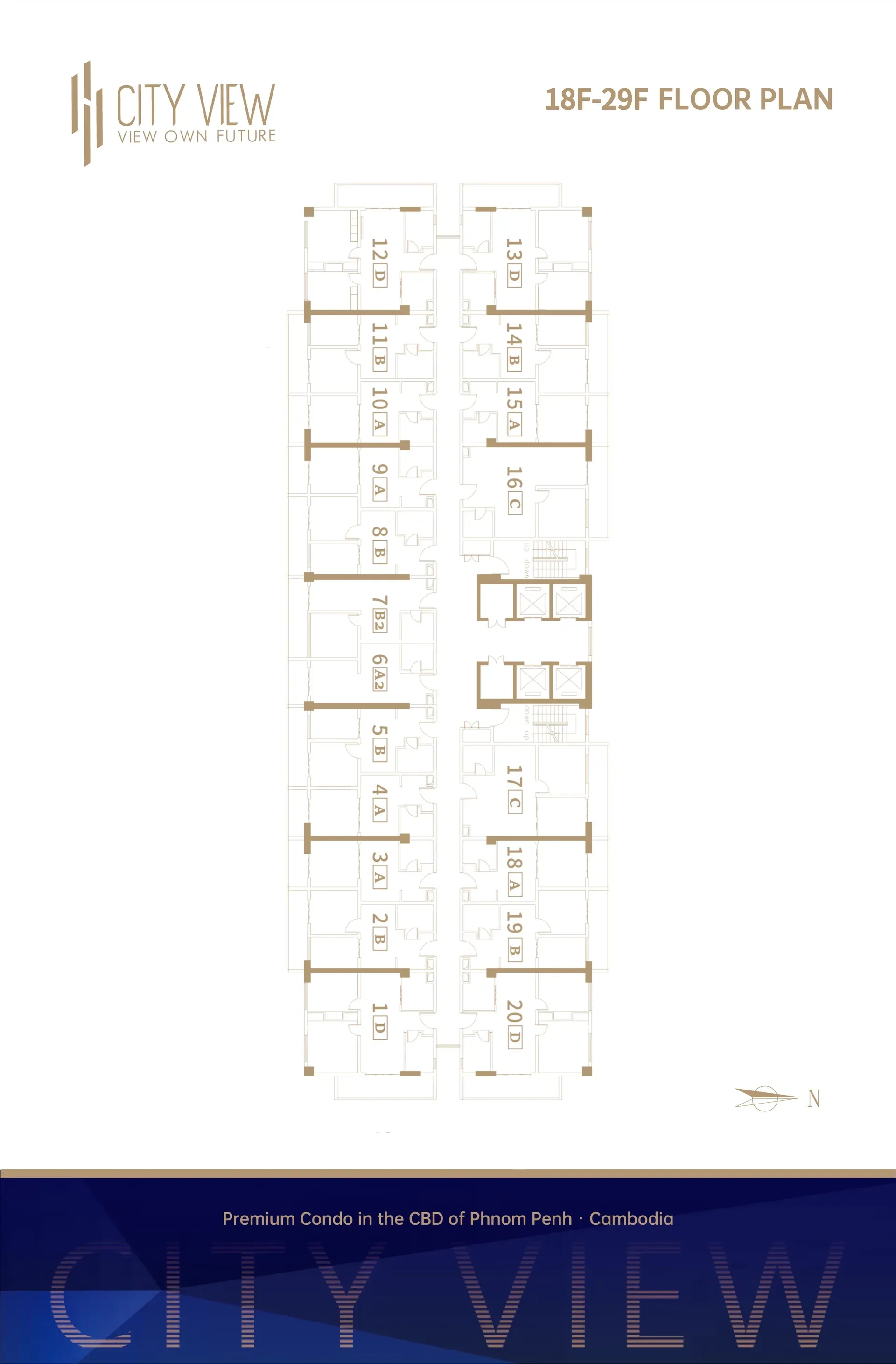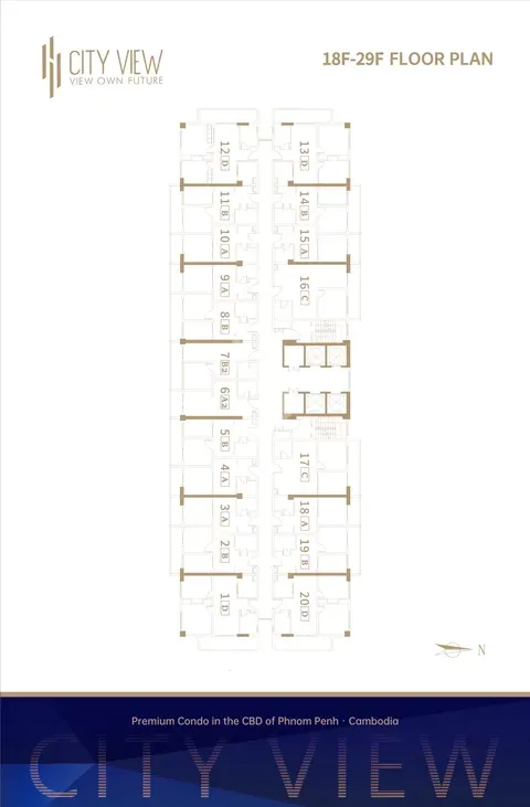 City View Residence is a modern 34-story condominium located in Phnom Penh City Center (PPCC), along Road 168, Village 1, Srah Chak Commune, Doun Penh District, Phnom Penh. Developed by Hua Jun Property Development Co., Ltd., this luxurious building offers a total of 476 units, including Studio and Two-Bedroom apartments, with sizes ranging from 40m² to 80m².
