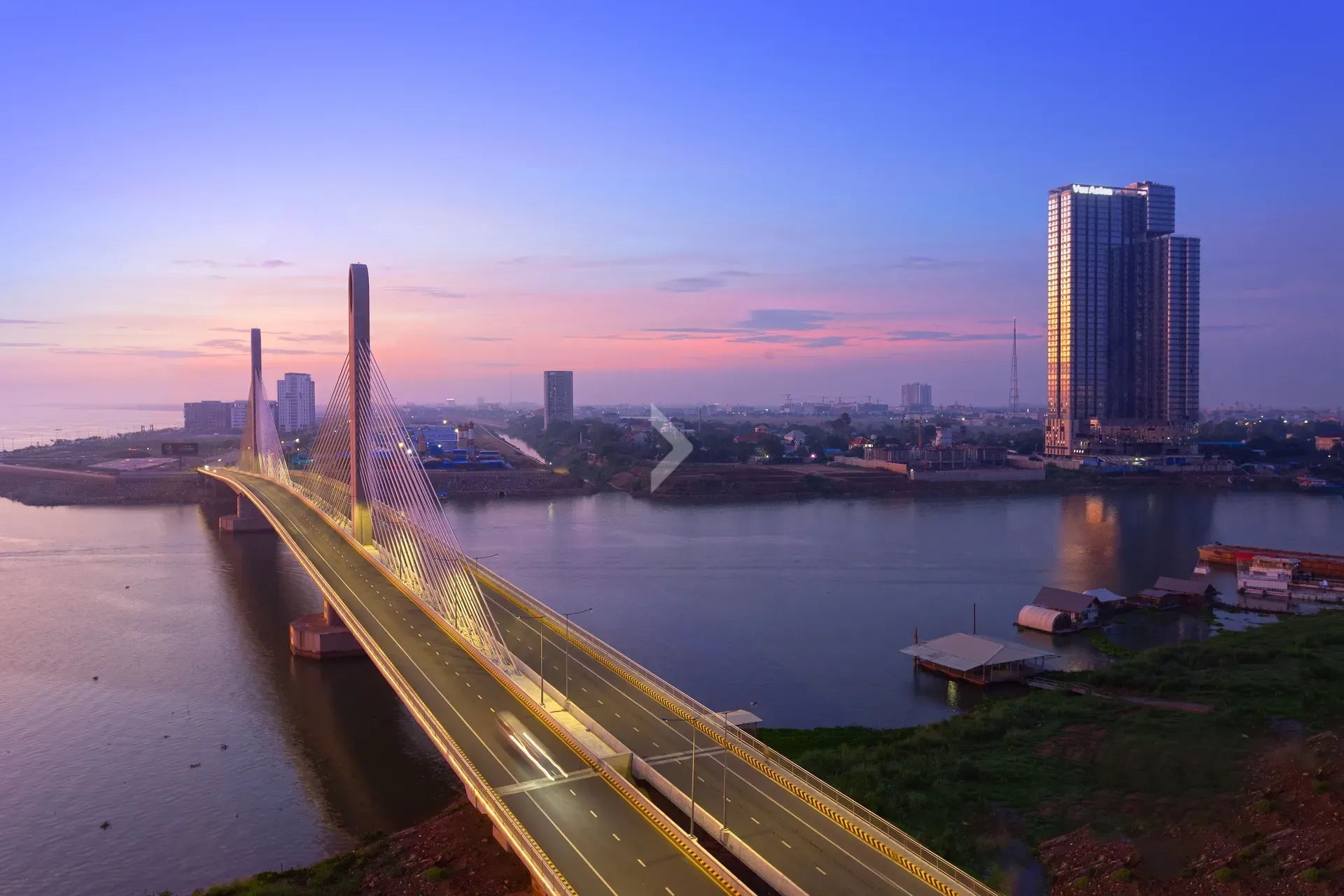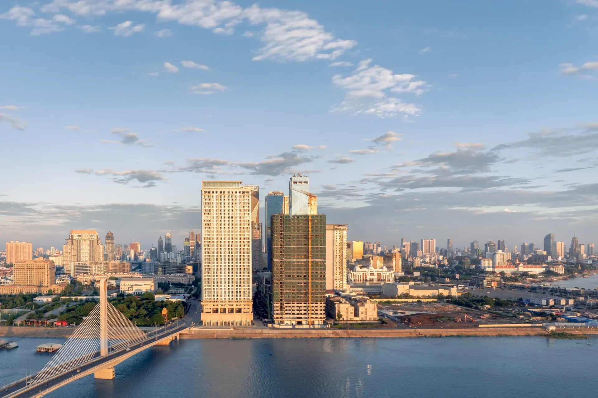 The Diamond Bay Condominium, part of the Diamond Bay Garden development, is a landmark project located on Koh Pich (Diamond Island), Phnom Penh, by OCIC (Overseas Cambodian Investment Corporation). The residential tower offers stunning views of the Mekong River and is designed to set new standards in luxury waterfront living. The property is situated in a prime location with convenient access to key landmarks like Aeon Mall, Independence Monument, and the Royal Palace.