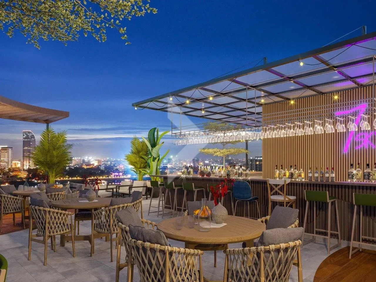 Condo Seven Residence is a modern condominium ideally situated just 5 minutes from Aeon Mall Sen Sok and Tulkok. Designed in a distinctive U-shape, the building maximizes natural ventilation and sunlight, ensuring a superior quality of living for all residents. Boasting over 20 facilities including a swimming pool, gym, steam sauna, and library, Seven Residence offers unparalleled amenities to complement a contemporary lifestyle.