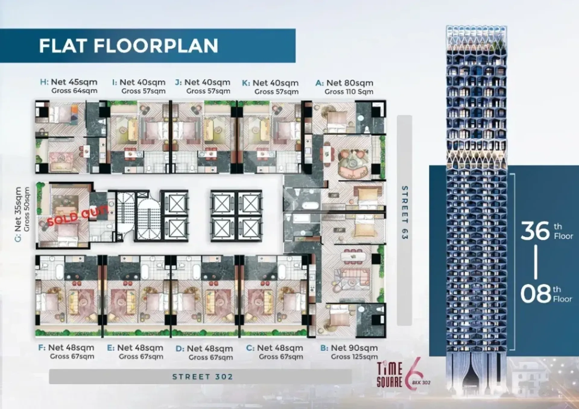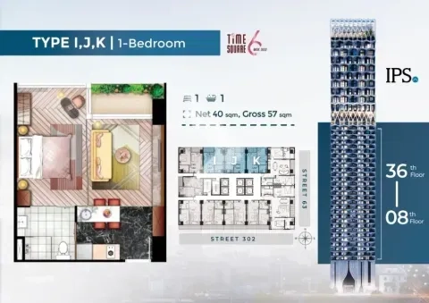 Time Square 302/6 is a luxury residential project located in Phnom Penh's bustling Boeung Keng Kang 1 (BKK1) area, developed by Megakim World Corp. The building offers a range of modern condos, from 1- to 4-bedroom units, designed for professionals and families. Standing 47 stories high, it boasts upscale facilities such as a rooftop swimming pool, gym, cinema room, karaoke, and golf simulator.