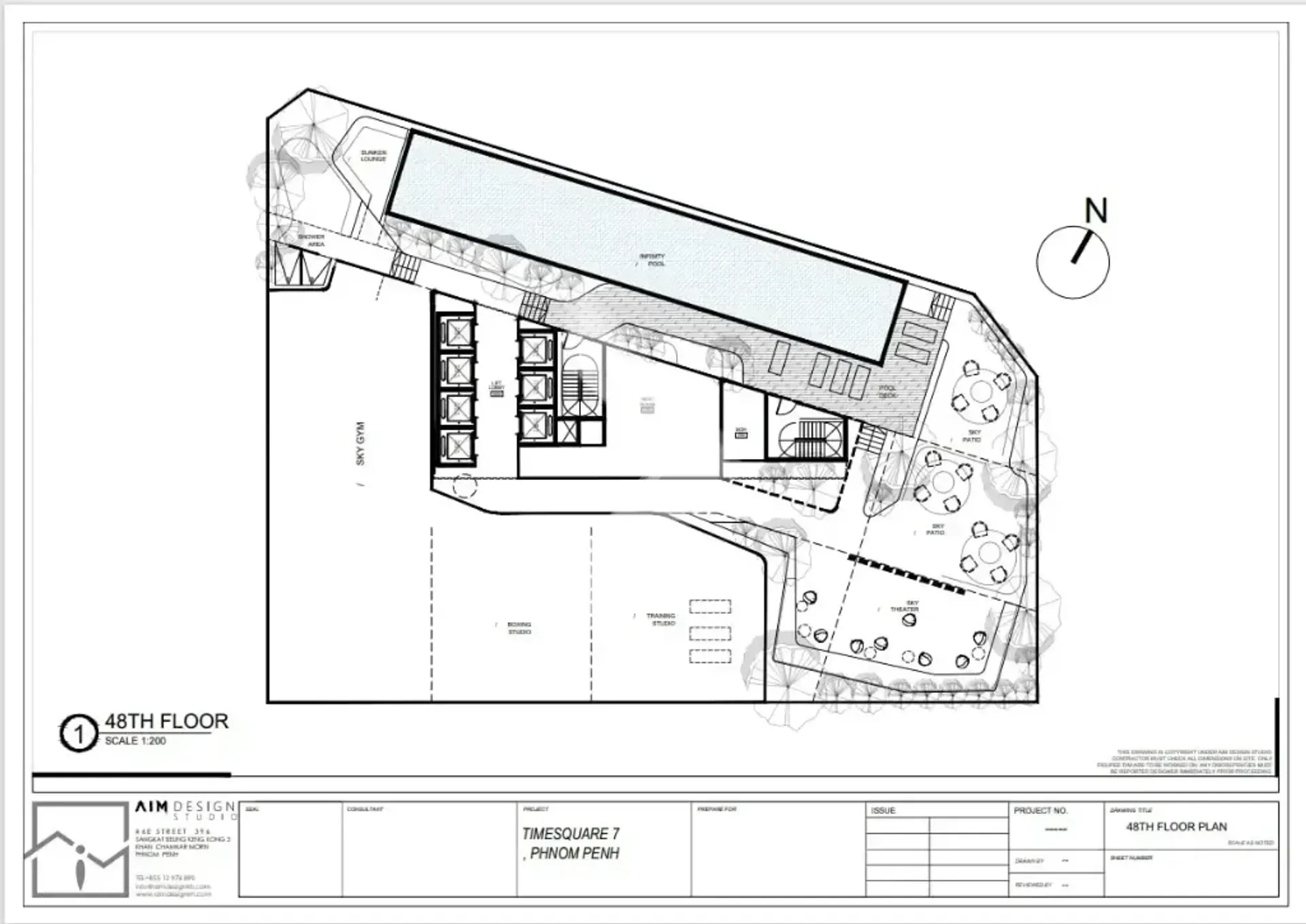 48th Floor: Sunken Lounge, Pool Deck, Training Studio, and Sky Theater