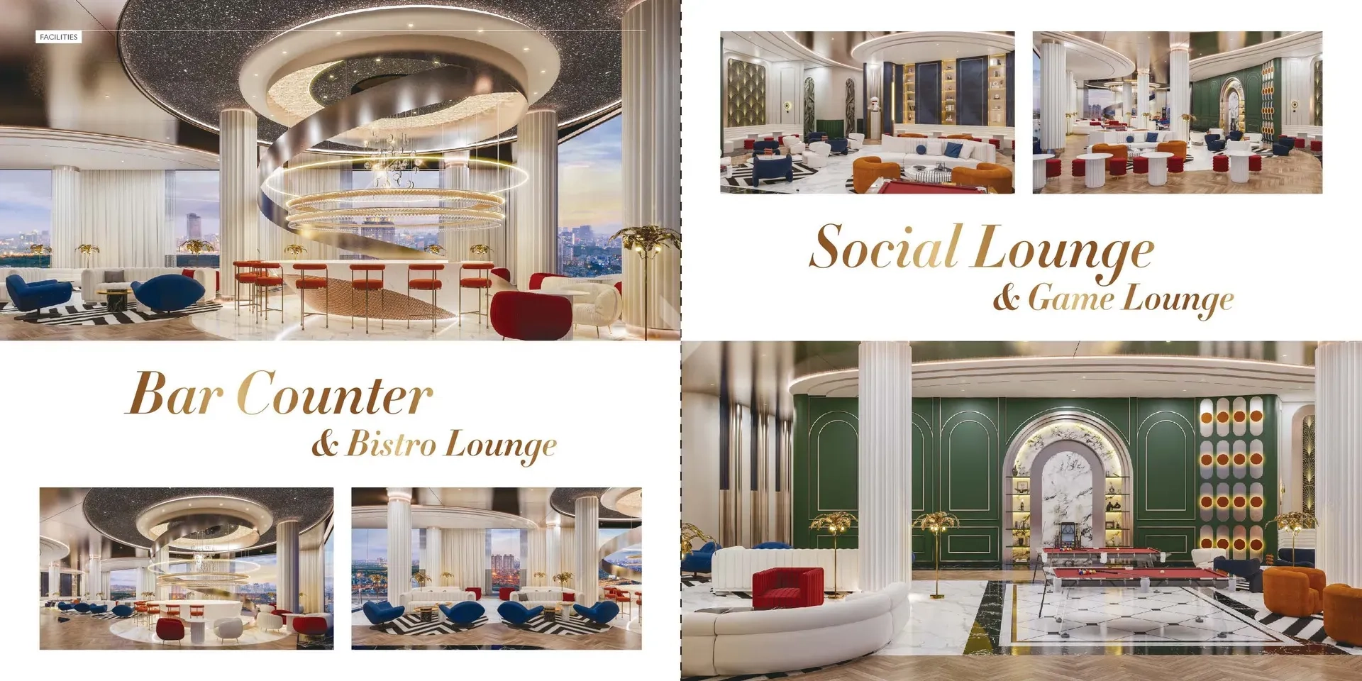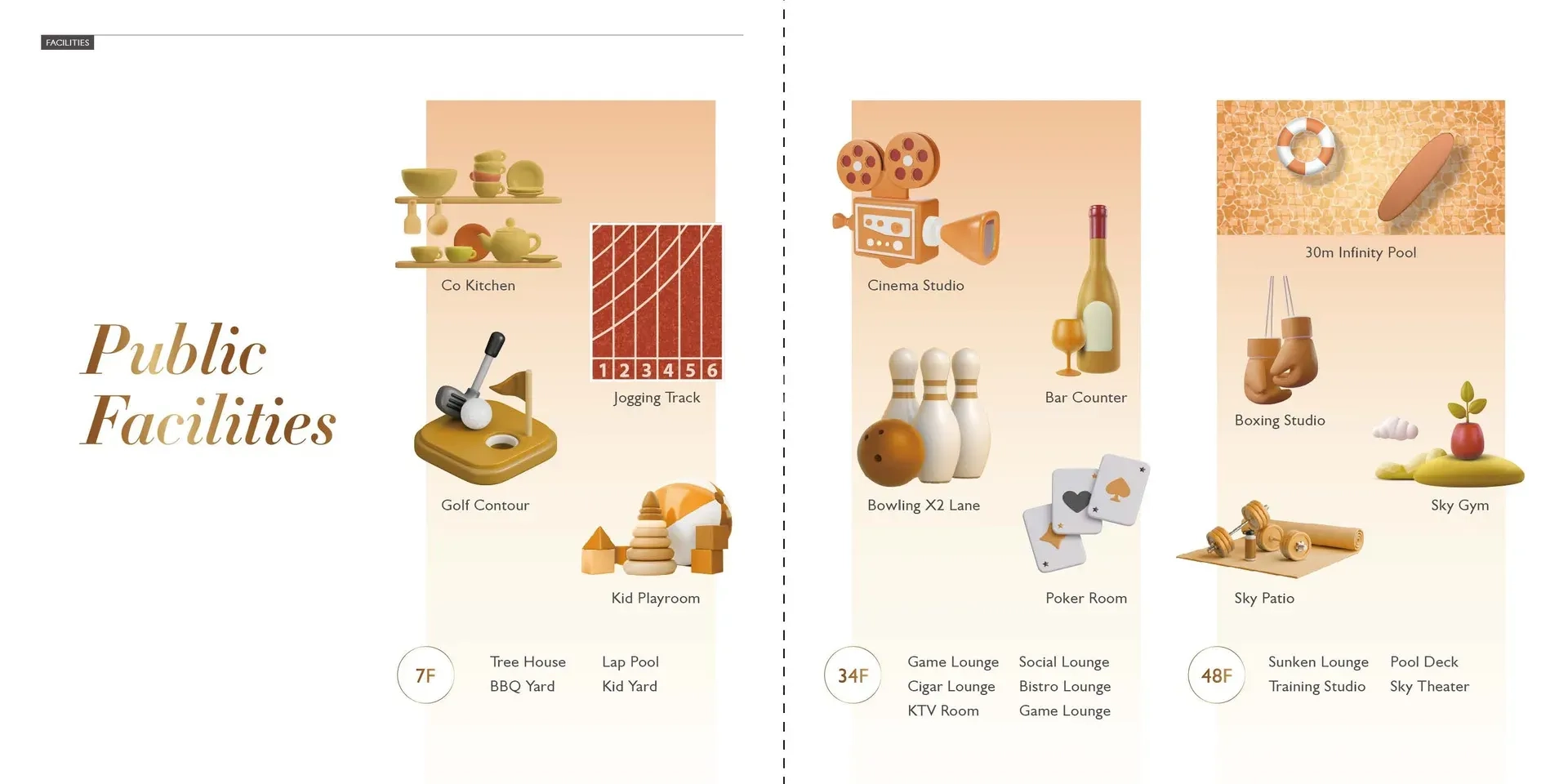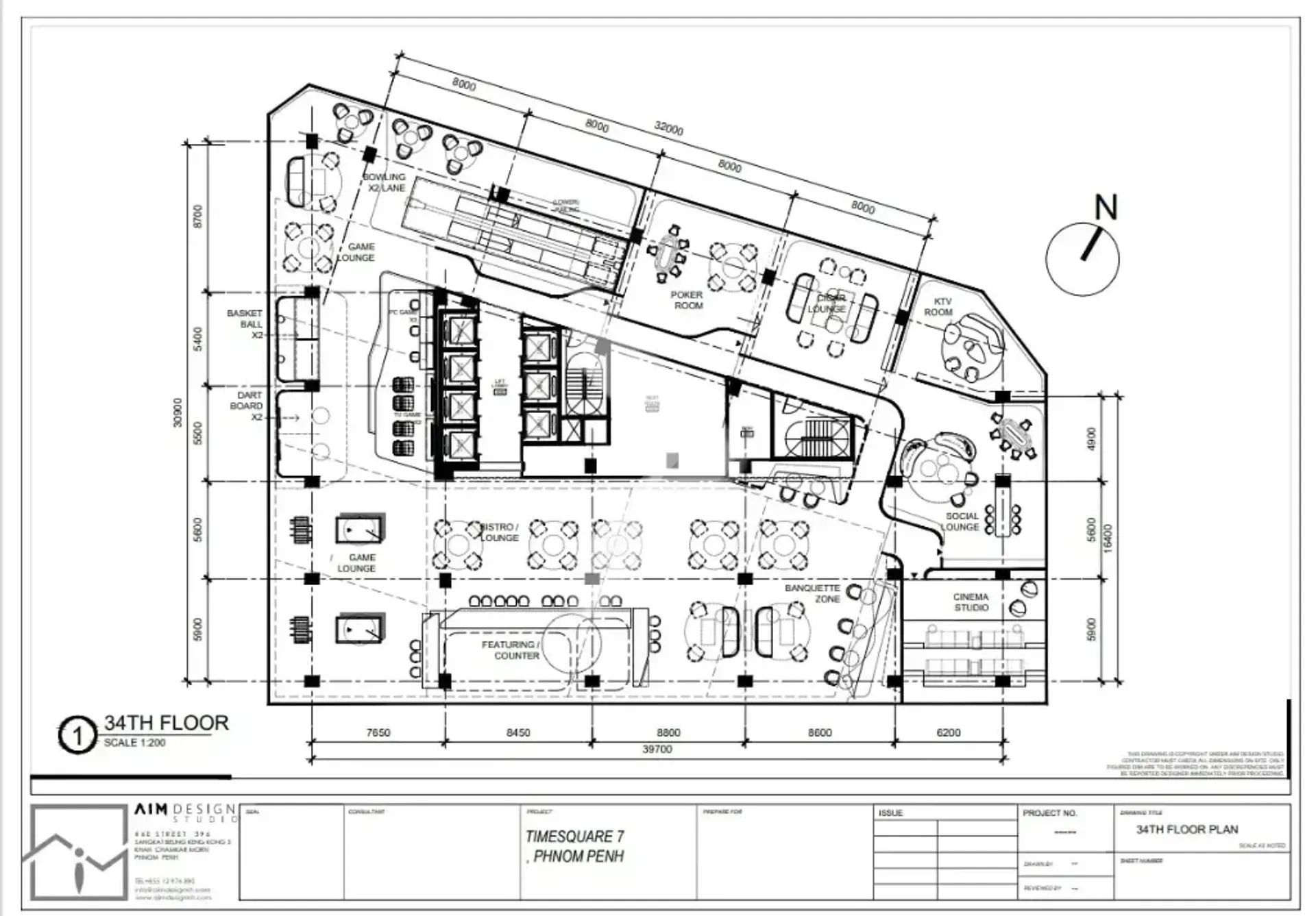 34th Floor: Game Lounge, Social Lounge, Cigar Lounge, Bistro Lounge, KTV Room, and Cinema Studio