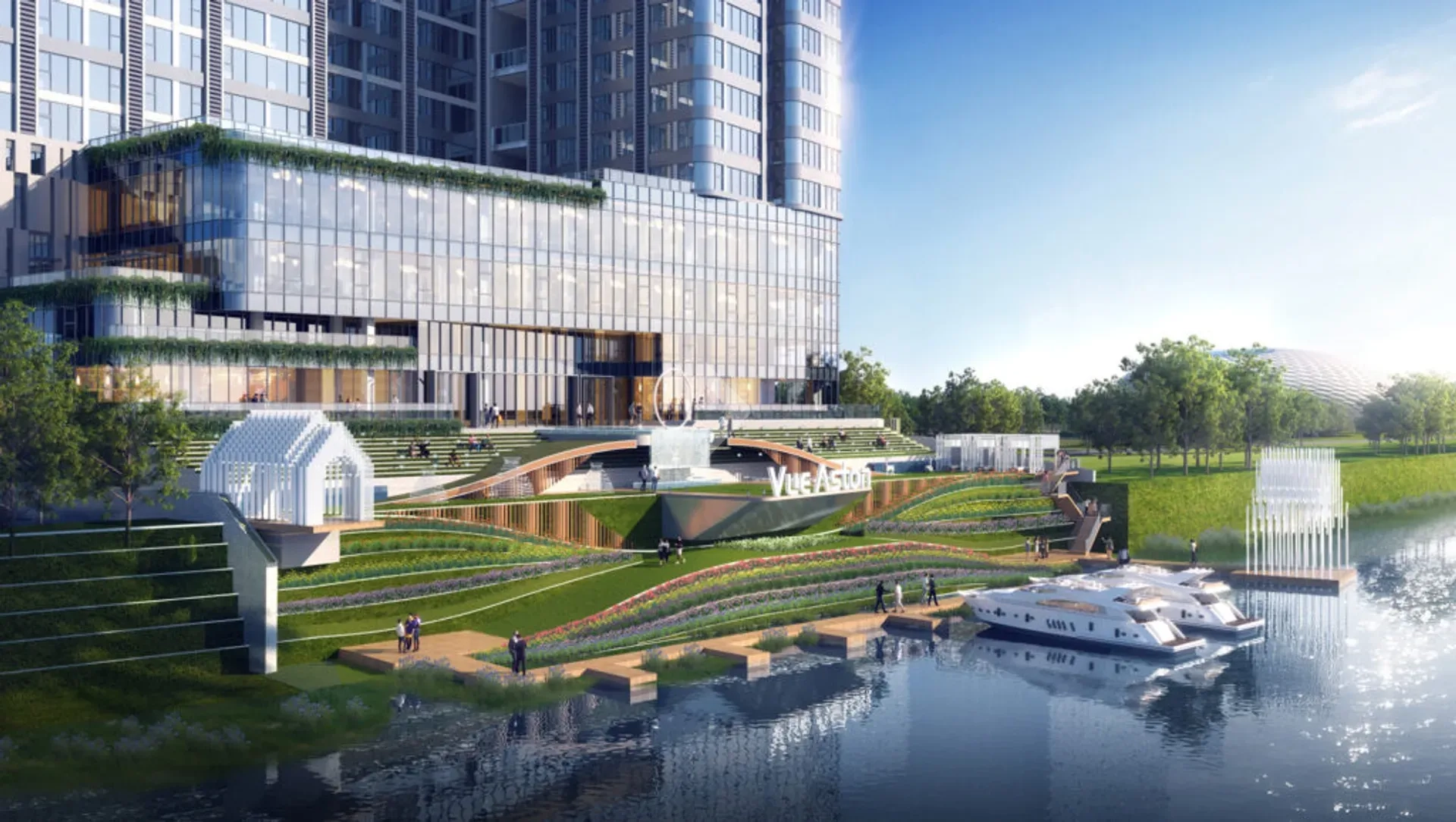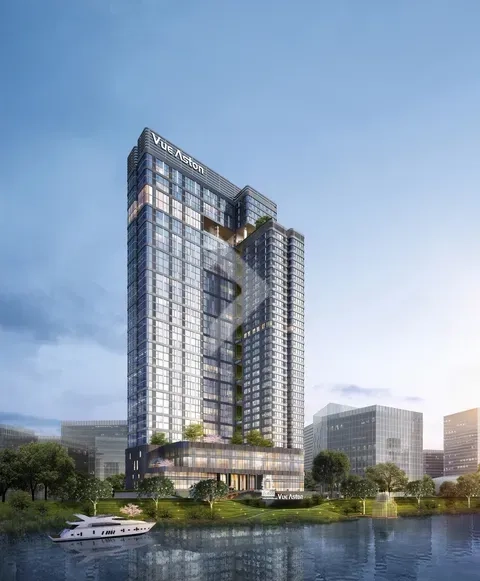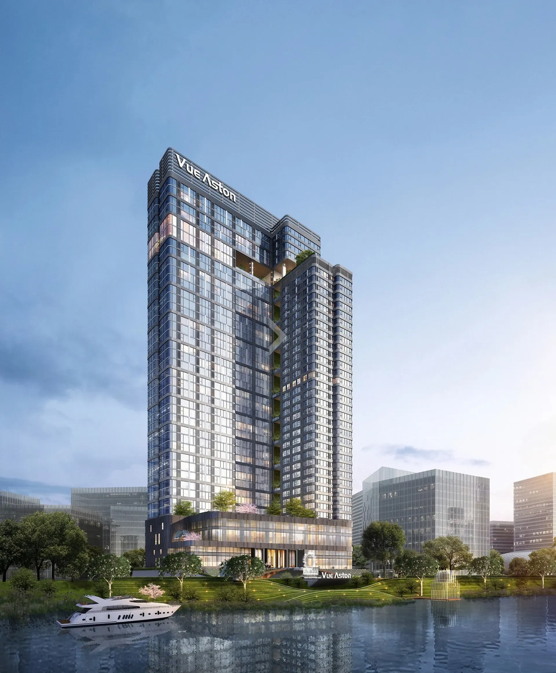 Vue Aston is a 45-story luxury condominium located in Phum Koh Norea, Sangkat Niroth, Khan Chhbar Ampov, Phnom Penh, where the junction of the Bassac River and Mekong River and Developed by The Peninsula Capital Co., Ltd. This luxury condominium has 895 units and ranging from Studio to 3 bedrooms. They’re also divided floor section such as: