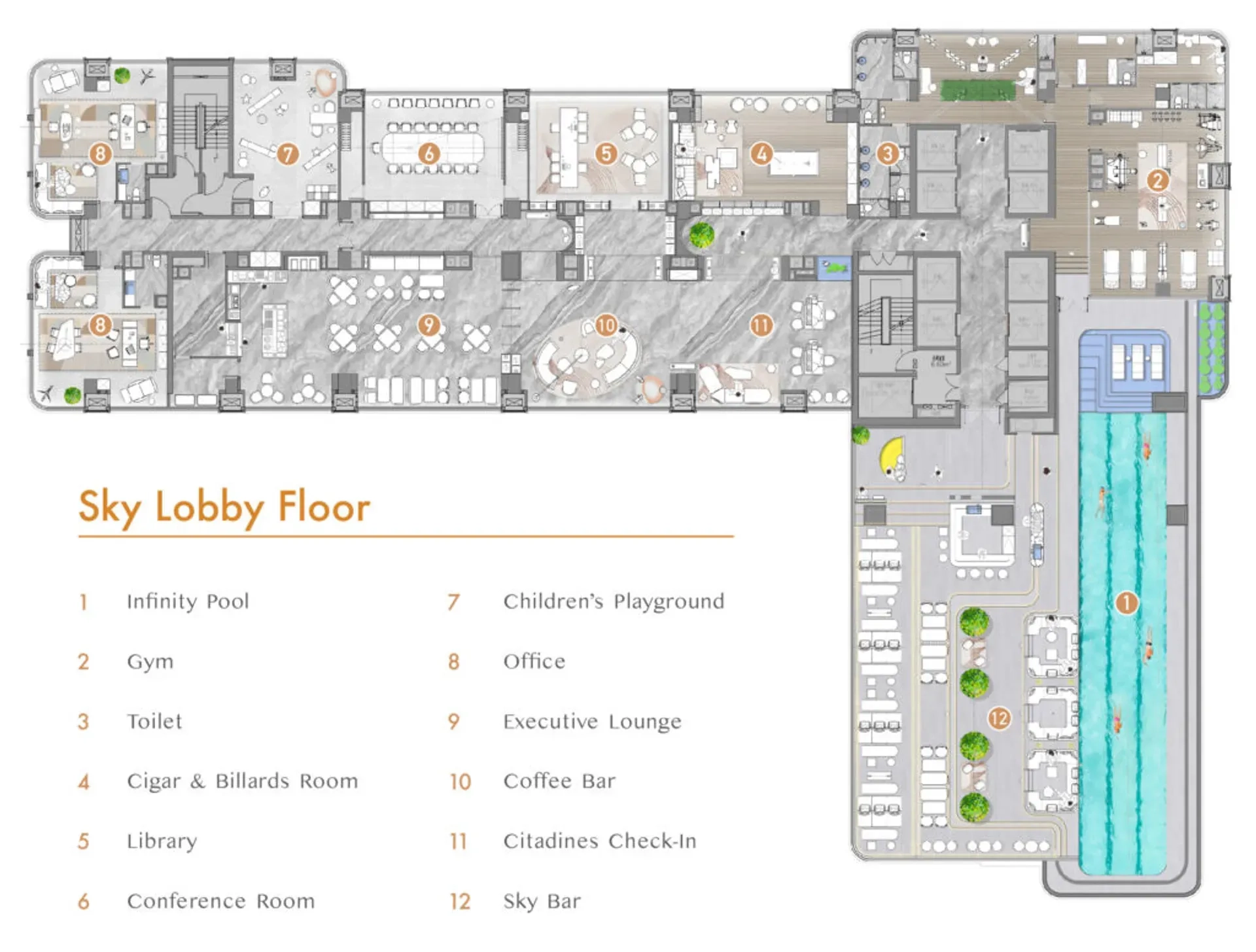 - 33—1F-33—6F: Citadines Apart’hotel Sky Lobby, Sky Bar, Infinity Pool, Gym Spa