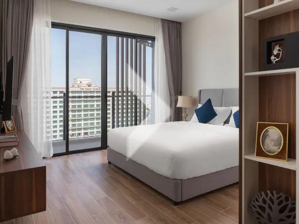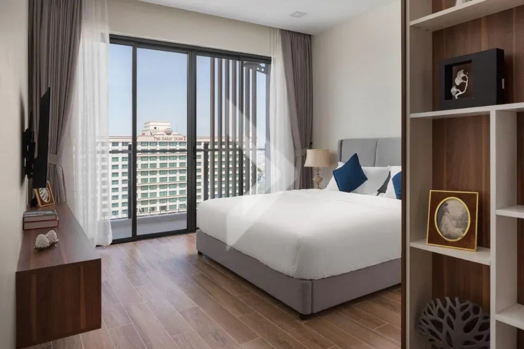 Experience modern urban living in this stylish 1 Bedroom apartment located near Mao Tse Toung Boulevard in Chamkamorn District, Phnom Penh. This inviting 4-star residence boasts a private terrace with stunning city views, a rooftop pool for relaxation, and a fully equipped fitness center to keep you active. Each unit features air conditioning, elegant parquet flooring, a well-appointed kitchen, and a private bathroom, ensuring comfort and convenience at every turn. With a 24-hour front desk service and a pet-friendly policy, this apartment is perfect for those seeking both luxury and flexibility.