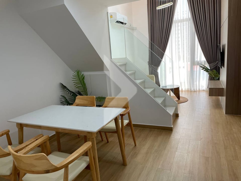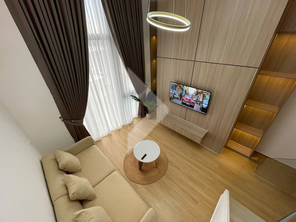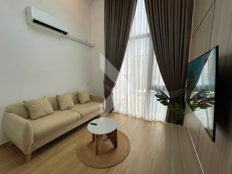 Morgan EnMaison offers a loft-style living experience defined by soaring ceilings, open layouts, and abundant natural light. Each unit is fully furnished and move-in ready, featuring quality appliances, modern décor, and an open-plan design that includes a galley kitchen, dining area, and lounge framed by bright, expansive windows. Higher-floor units enjoy sweeping riverside views—perfect for catching the morning sun or the glittering city skyline at night—bringing a sense of tranquility and sophistication to everyday living.