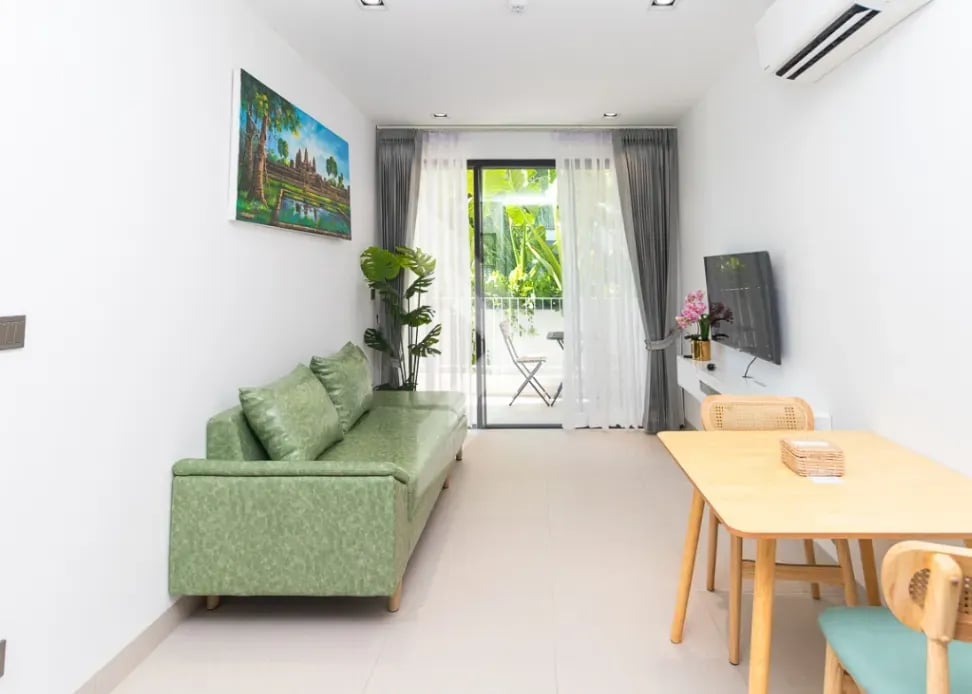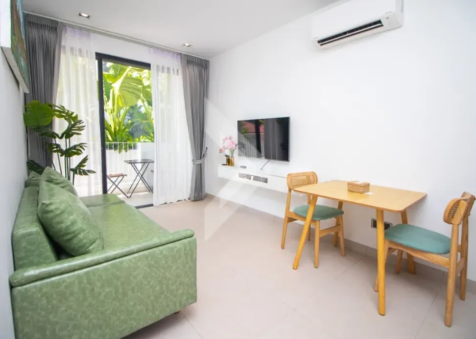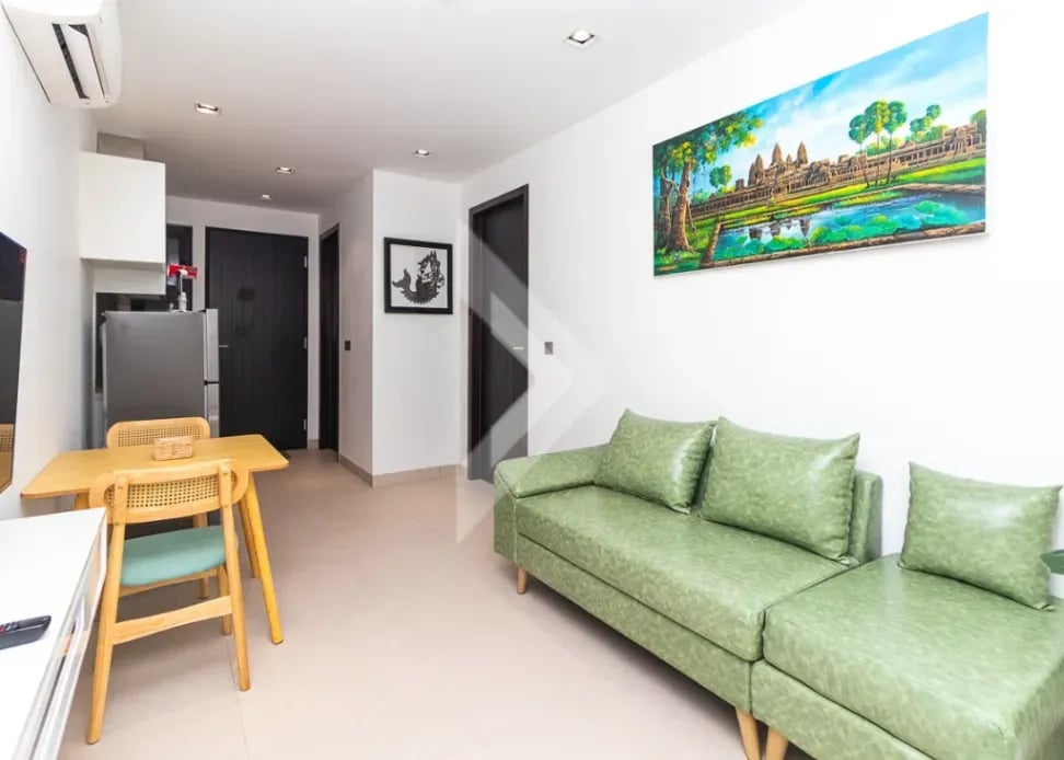 This 1-bedroom condo is located in the Rose Apple Square in Svay Dankum, just a 3-minute walk to Sok San Road and Angkor Night Market. The condo comes with access to a swimming pool, fitness center, parking space, and 24/7 security with CCTV. Perfect for those seeking comfort and convenience in the heart of Siem Reap.