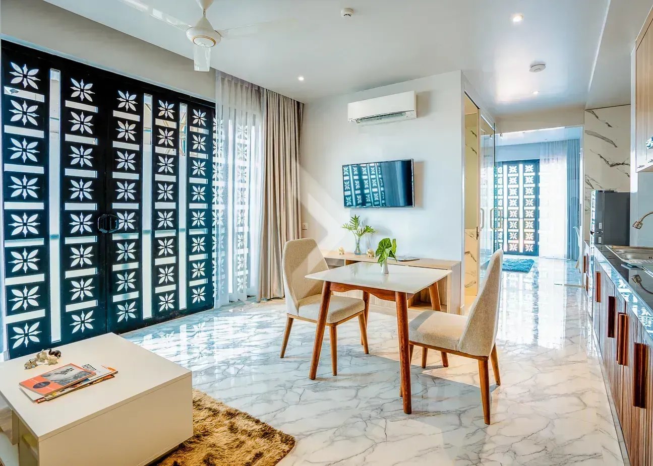 The Western style one-bedroom apartment for rent, conveniently located near Tmor Meas Road and Angkor High School in Sala Kamraeuk Commune, Siem Reap City.