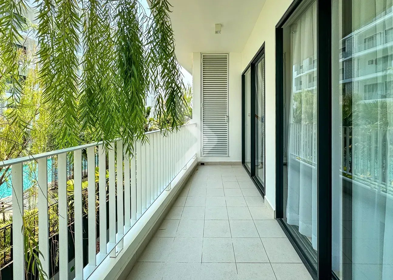 Step out onto your private balcony on the 2nd floor and take in the refreshing pool view. The building boasts modern amenities for your enjoyment, including an elevator, a backup generator for peace of mind, 24/7 security with guards and CCTV, and secure underground parking. Take a dip in the sparkling swimming pool or get a workout in the on-site gym.
