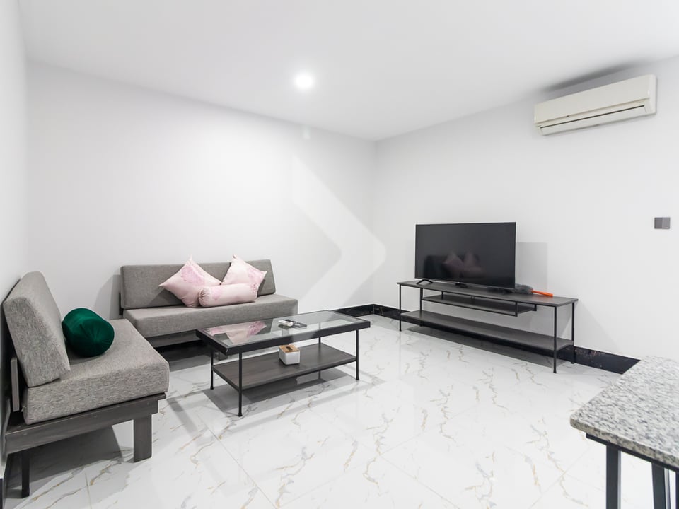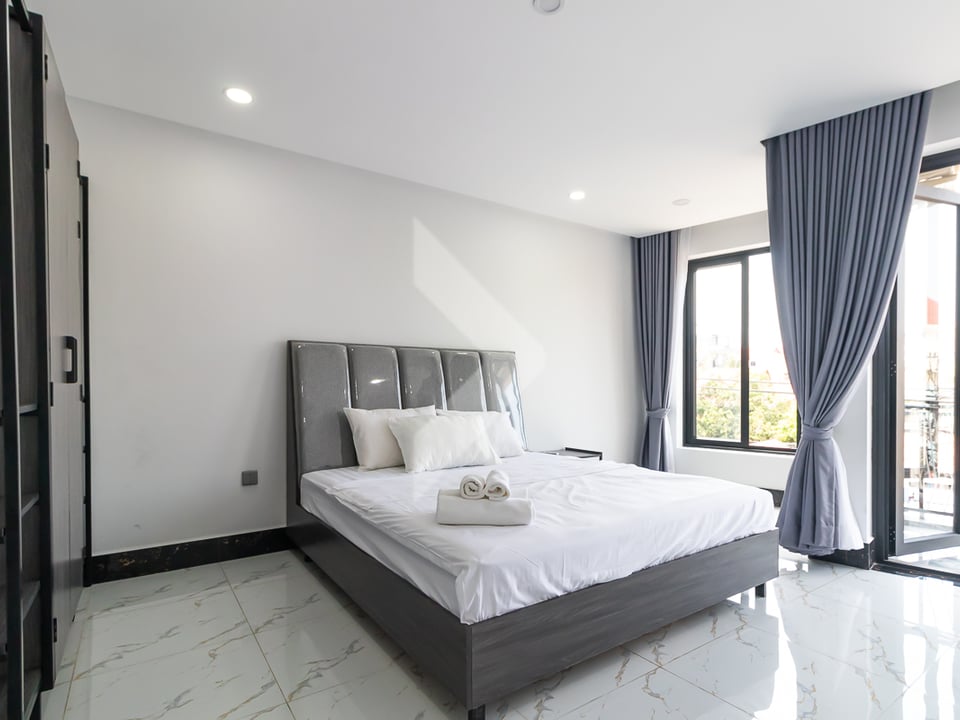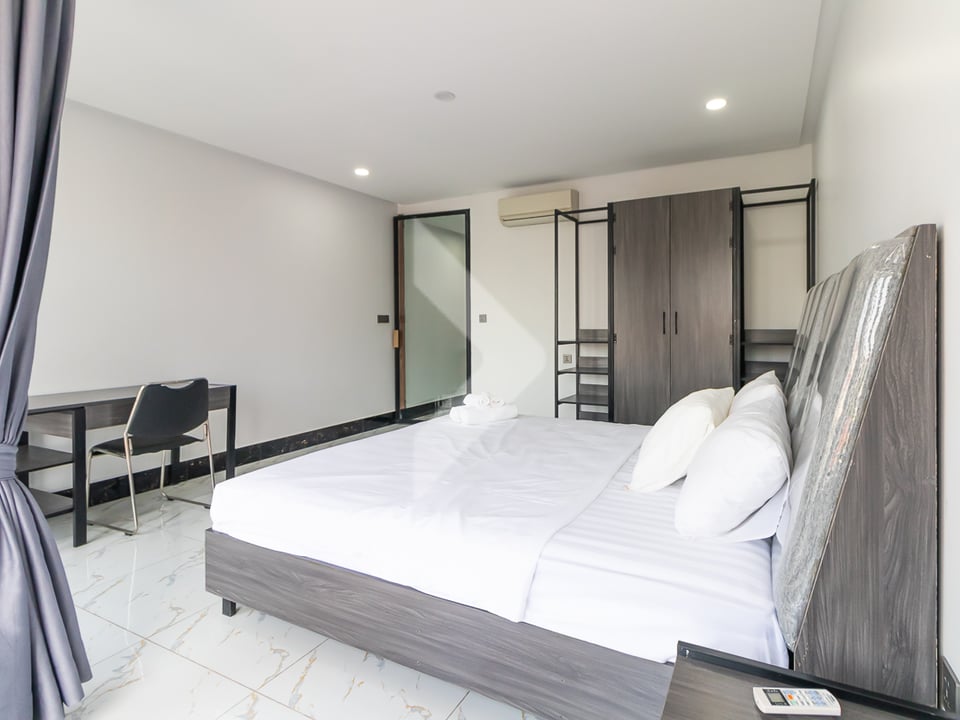 This spacious 1-bedroom apartment offers a perfect balance of modern living and affordability, ideal for singles or couples. 1 bedroom with air-conditioning and wardrobe. 1 bathroom with hot/cold shower. Livingroom area with sofa and TV, fully equipped kitchen, Private balcony with city view, Secure parking for motorbikes and bicycles. 2 minutes to Pub Street & Old Market, Walking distance to cafes, restaurants, and minimarts, Easy access to Angkor Wat and other attractions.