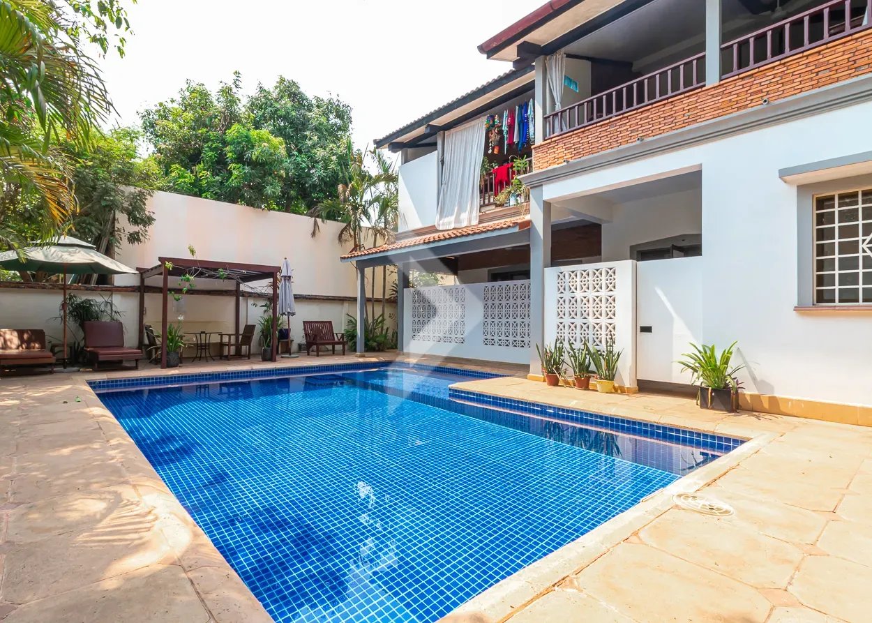 Within walking distance to local markets, convenience stores, restaurants, and popular landmarks such as Wat Bo Temple and the Siem Reap River. Public transportation options are readily available nearby.