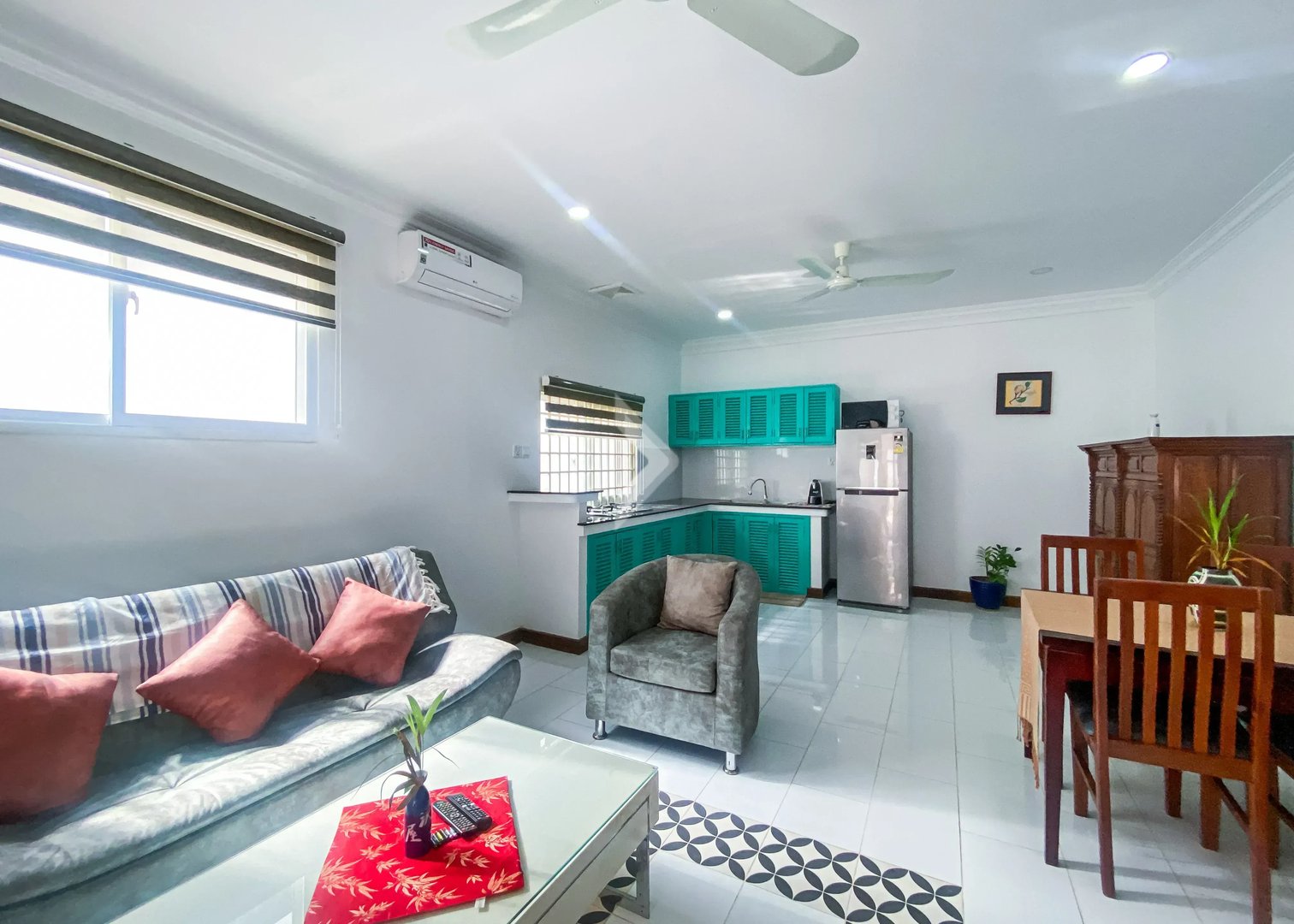This fully furnished One bedroom apartment is designed and decorated in a contemporary setting.