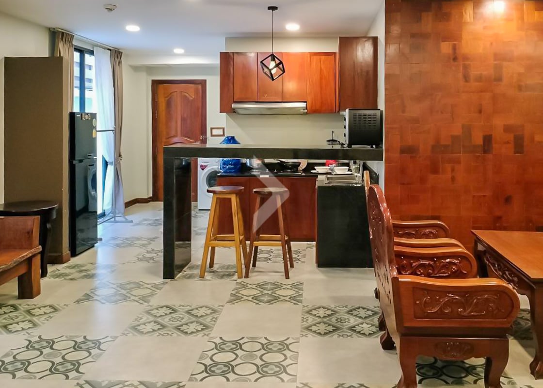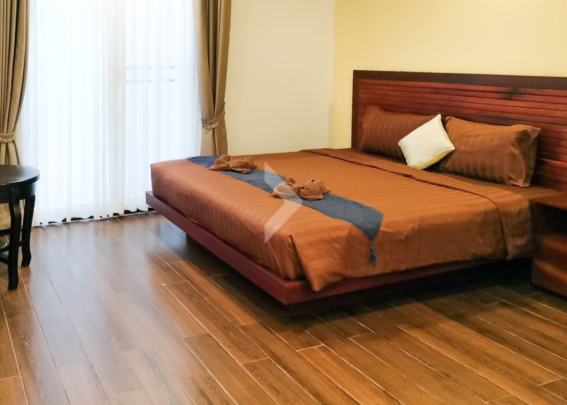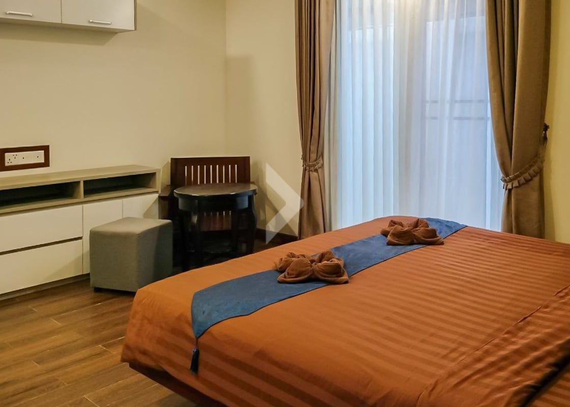 This 1-bedroom apartment for rent is located on Riverside Road in Siem Reap, in the Svay Dankum area. It features a cozy living space and access to a shared pool, perfect for relaxing. The apartment is close to local shops, restaurants, and the Siem Reap River, making it a great spot for easy living. It's a quiet and convenient place for anyone looking to enjoy the area.