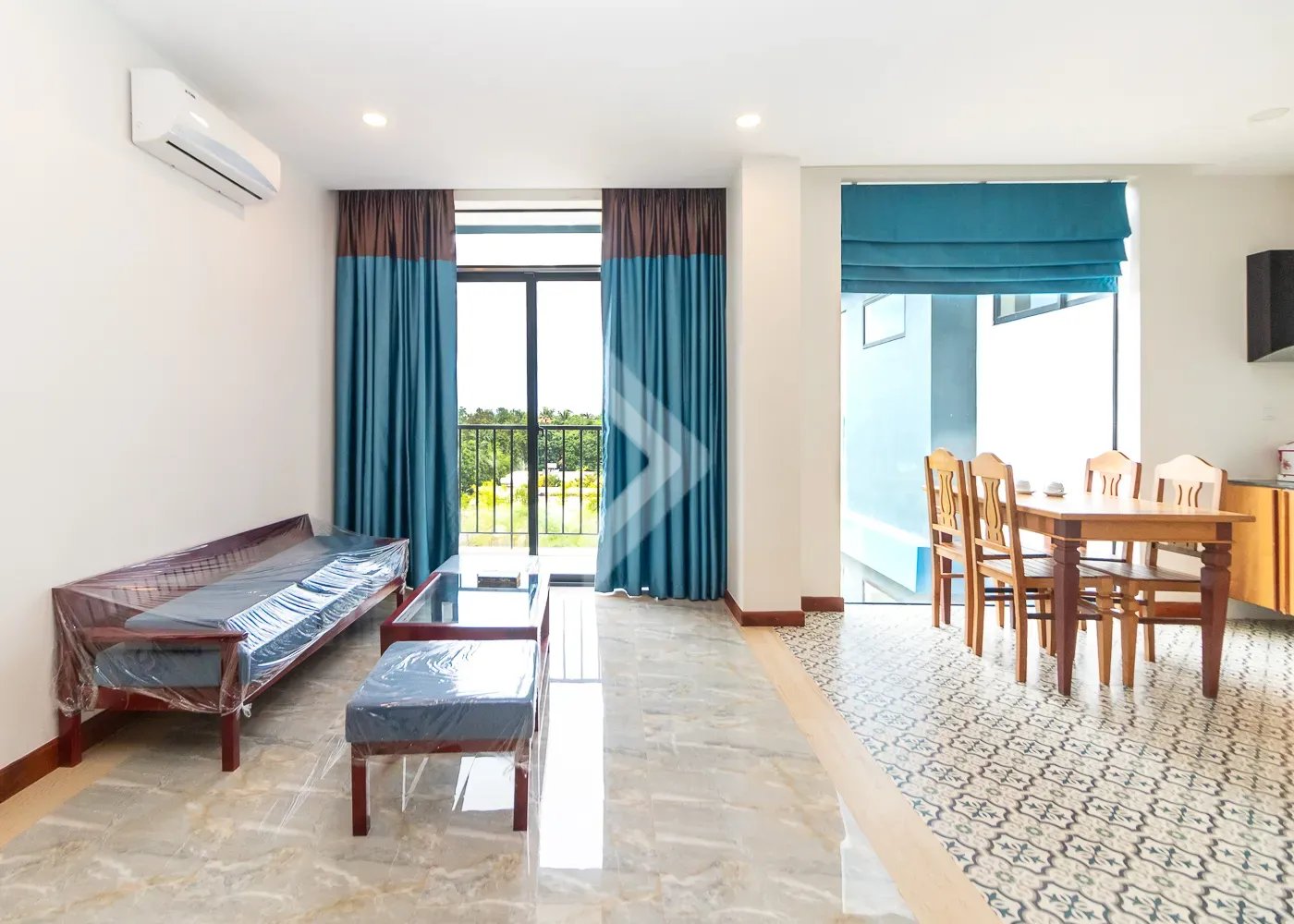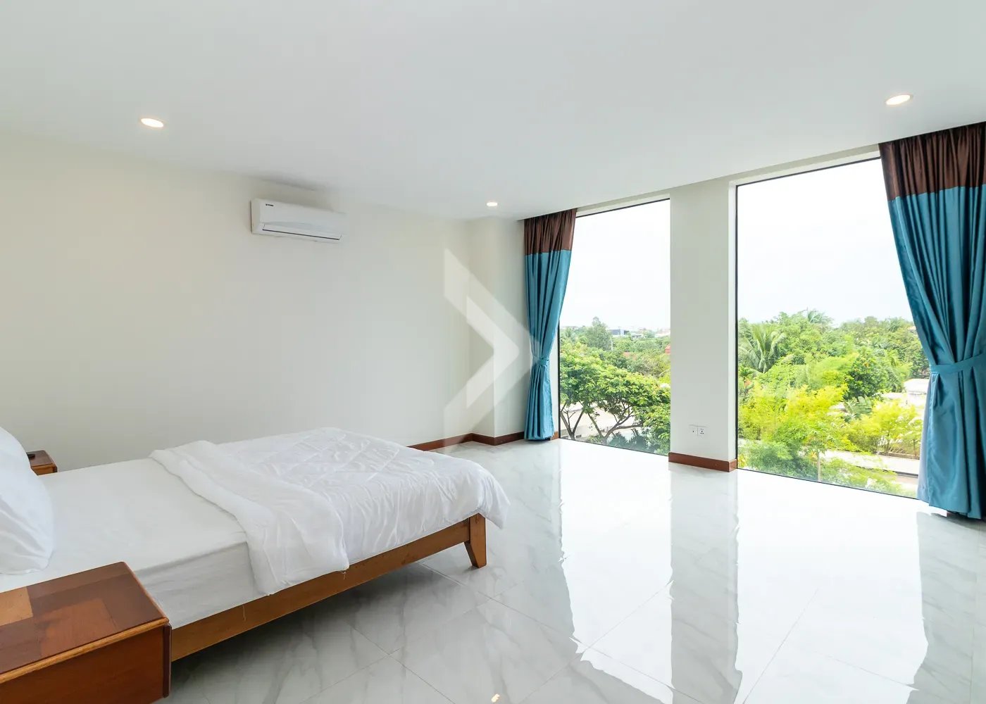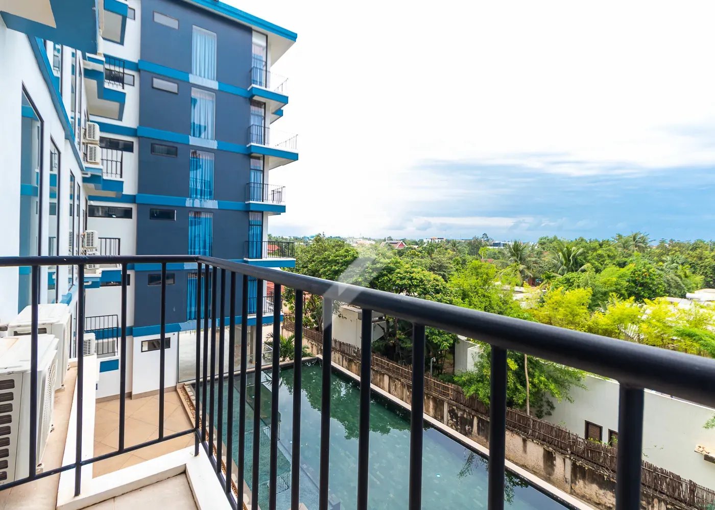 This 83 sqm apartment is highlighted by the amazing view and the living space is very bright all day long. The location is really something unique as well because it is a very quiet area, but just 8 mins from Leu Market, and 9 mins to Pub Street and old market. Many shops, good restaurants, and a large market hall surround the square, so life is this area is extremely convenient.