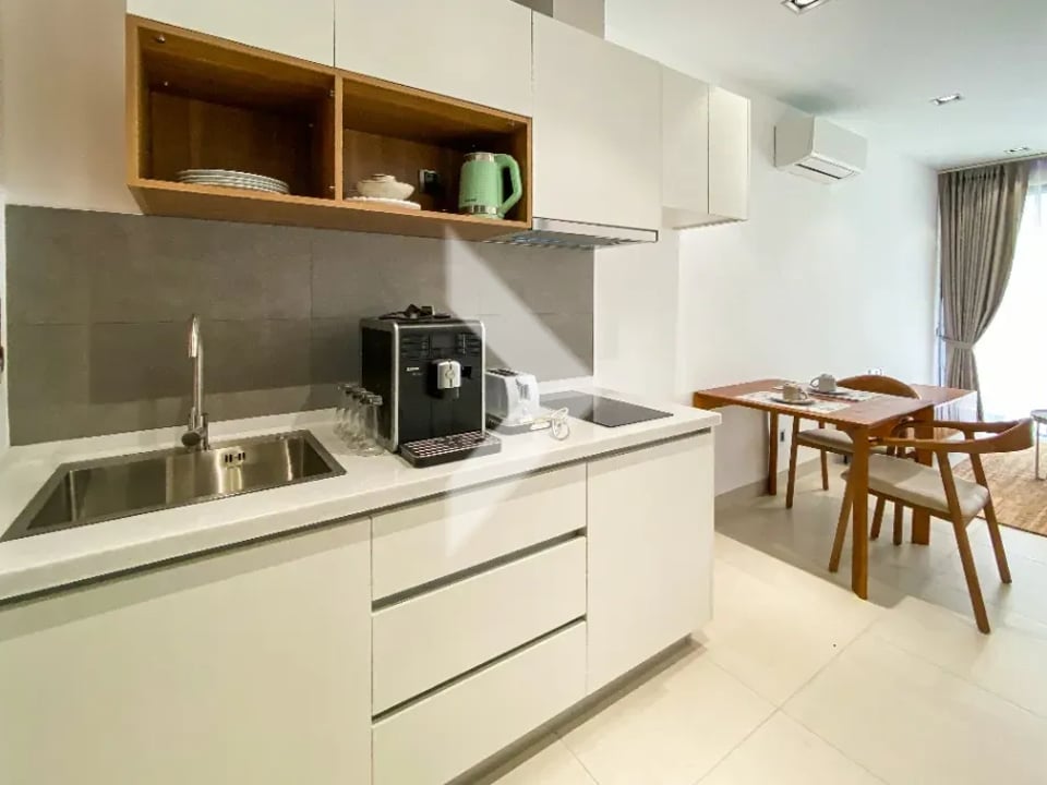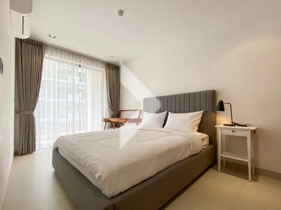 1-Bedroom Condo at Rose Apple Square. Unwind in style and convenience at Rose Apple Square, Siem Reap's premier condo development, with this impeccably furnished 1-bedroom unit. Just a 5-minute stroll from the vibrant buzz of Pub Street, placing you in the heart of Siem Reap's action. Settle into a cozy bedroom with balcony access, perfect for enjoying refreshing breezes and pool views. Fully equipped, relax in the living area with a comfy sofa set and dining table. High-end amenities, Stay entertained with a large smart TV, stay cool with A/C, and keep your clothes organized with a spacious wardrobe. A fridge, electric heating, and washing machine ensure a comfortable and hassle-free stay. Take a dip in the well-maintained swimming pool, or head to the professional gym managed by Bulldogs fitness center.