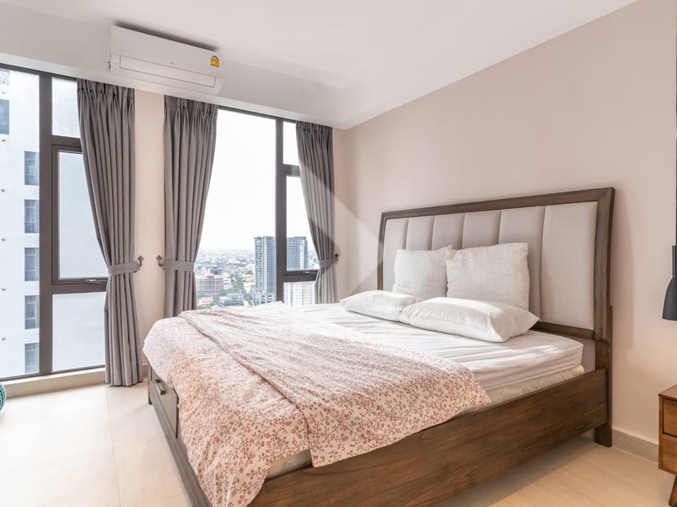 If you're searching for a modern and secure home with an excellent environment, this two-bedroom unit at Time Square 3 Condo is a perfect choice. Fully furnished and located on the 26th floor, it offers enhanced privacy and stunning views. The unit spans 55 sqm and is available for just $650/month, including the management fee.