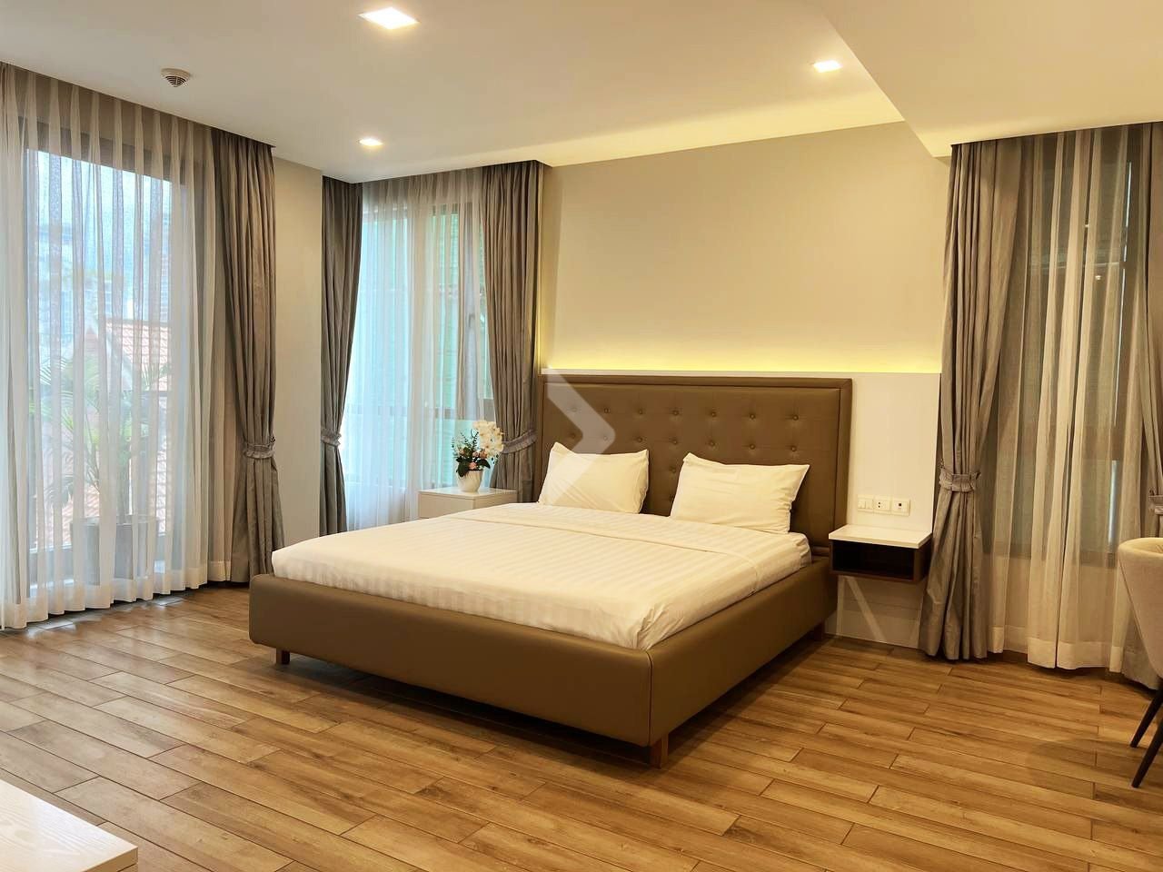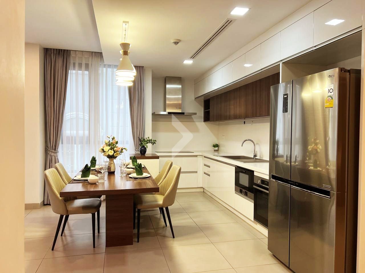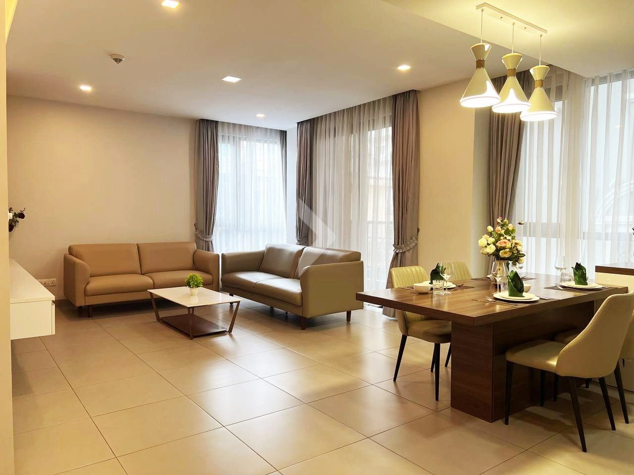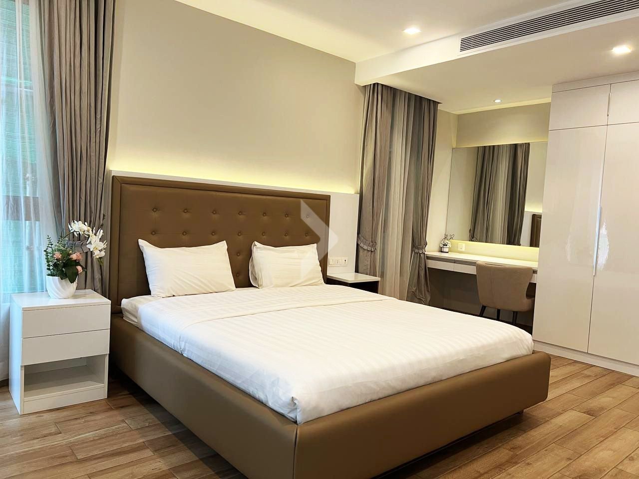 This fully furnished apartment is located in BKK1 and is available for $1,400 per month. It features two bedrooms and two bathrooms with a total size of 107sqm, offering a cozy and comfortable living space in a prime location. The apartment is designed to provide both style and functionality for professionals or small families. Residents also benefit from 24/7 security, ensuring a safe and convenient living environment.