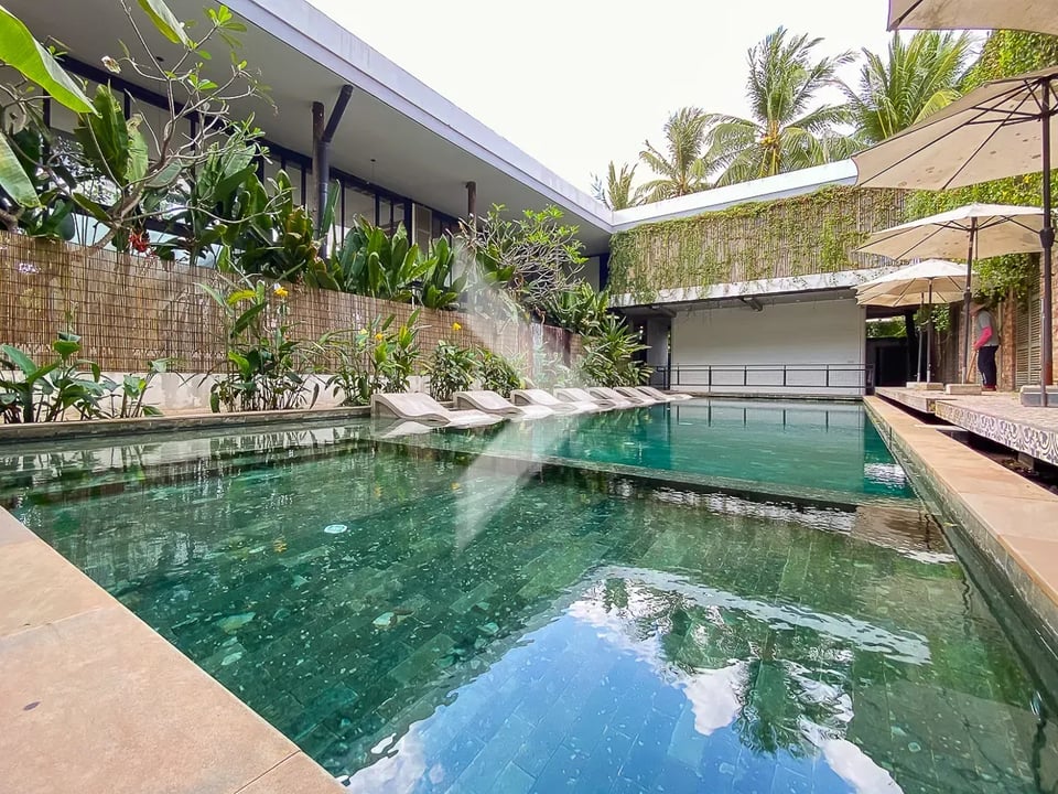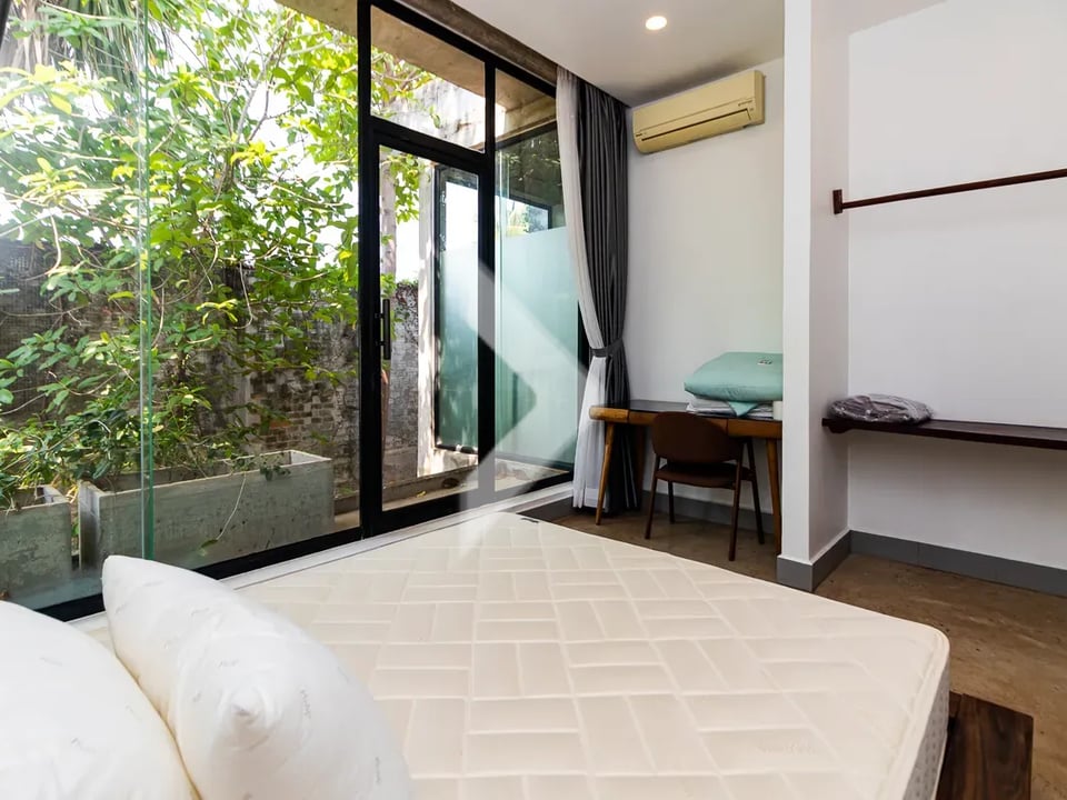 The apartment features a beautiful greenery garden and a big swimming pool, perfect for relaxing and enjoying the serene surroundings.