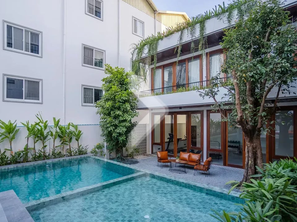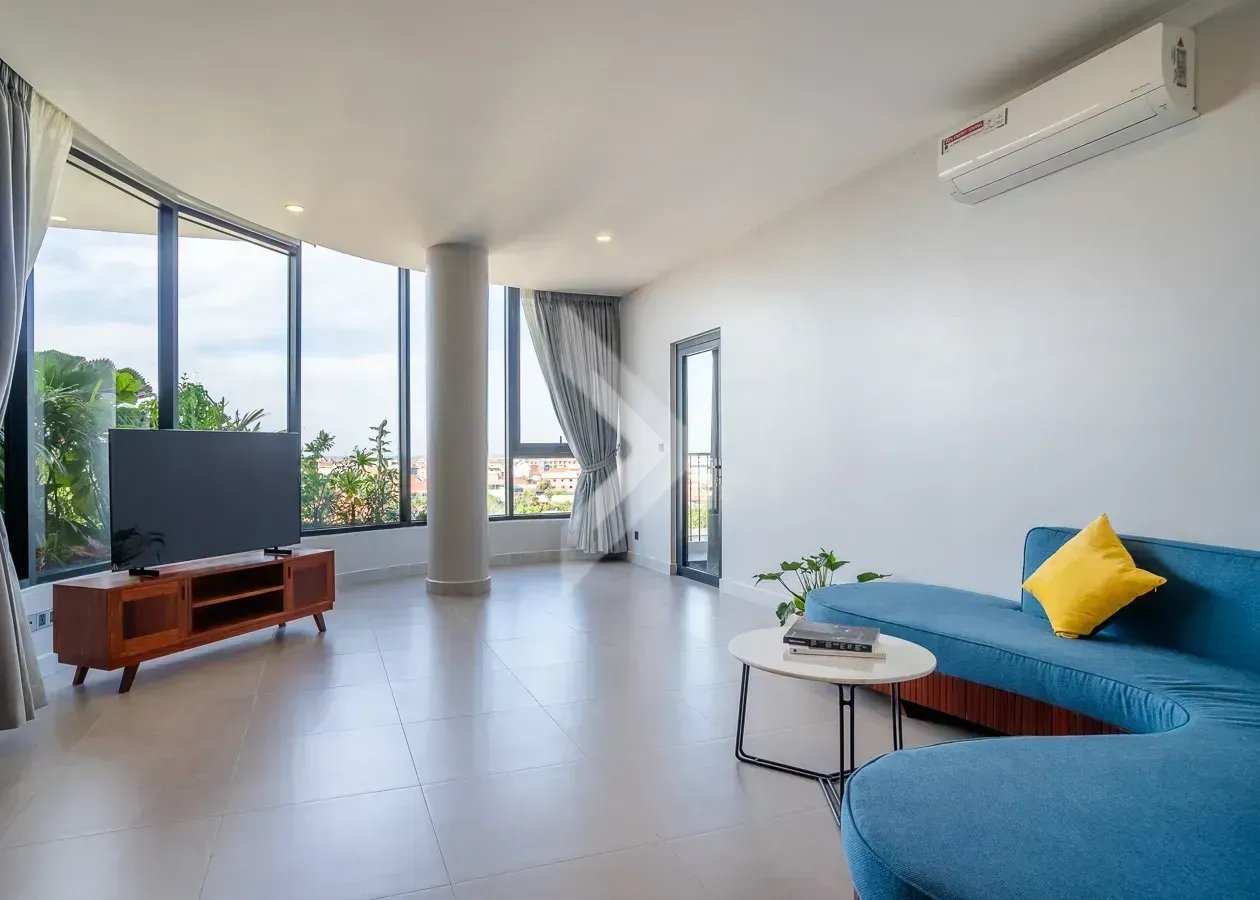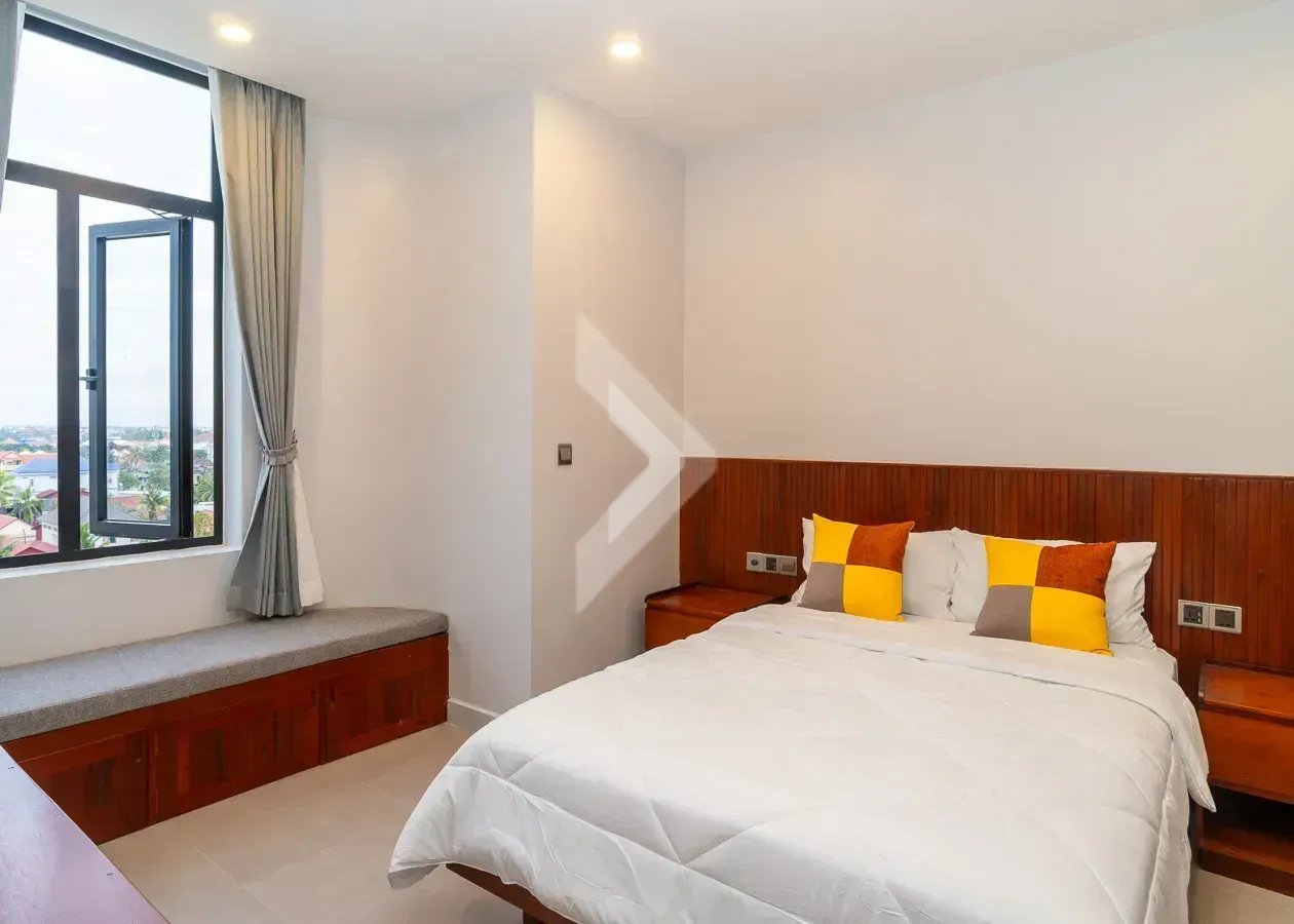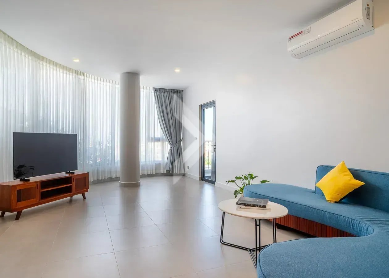 Looking for a stylish apartment in Siem Reap? This 2-bedroom spot is located in the convenient Sla Kram area, just off Lok Taneuy Road. Enjoy easy access to the city center – it's only a 5-minute drive to the Old Market and Pub Street!