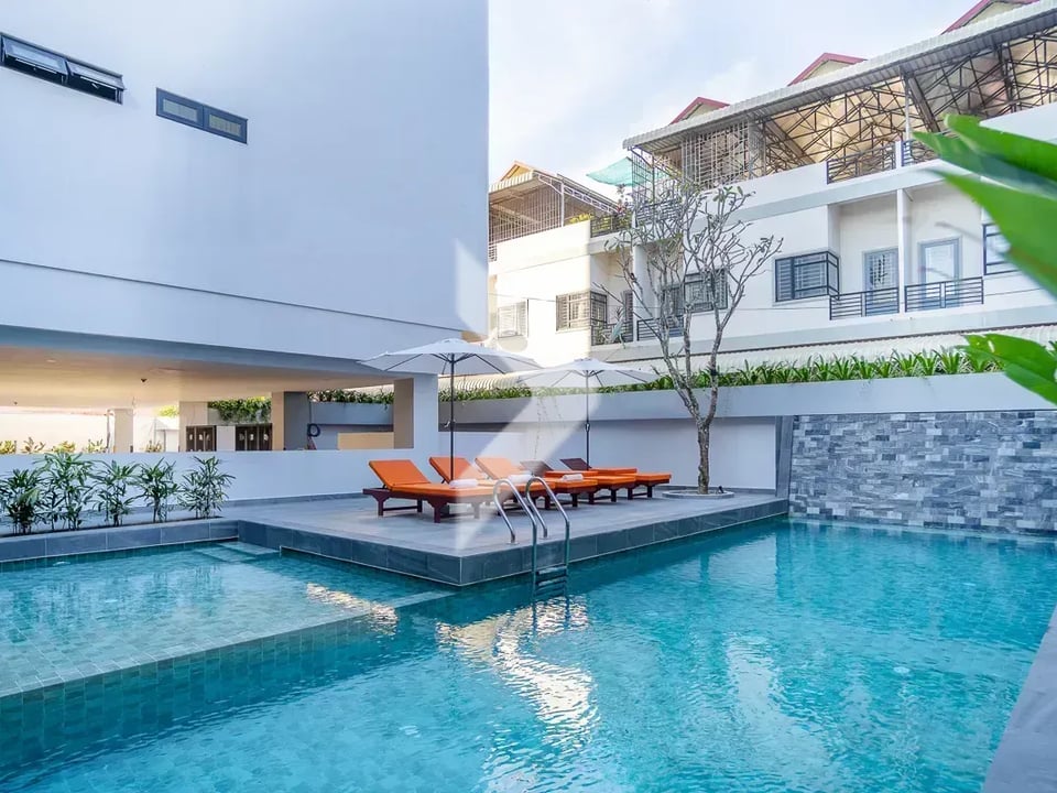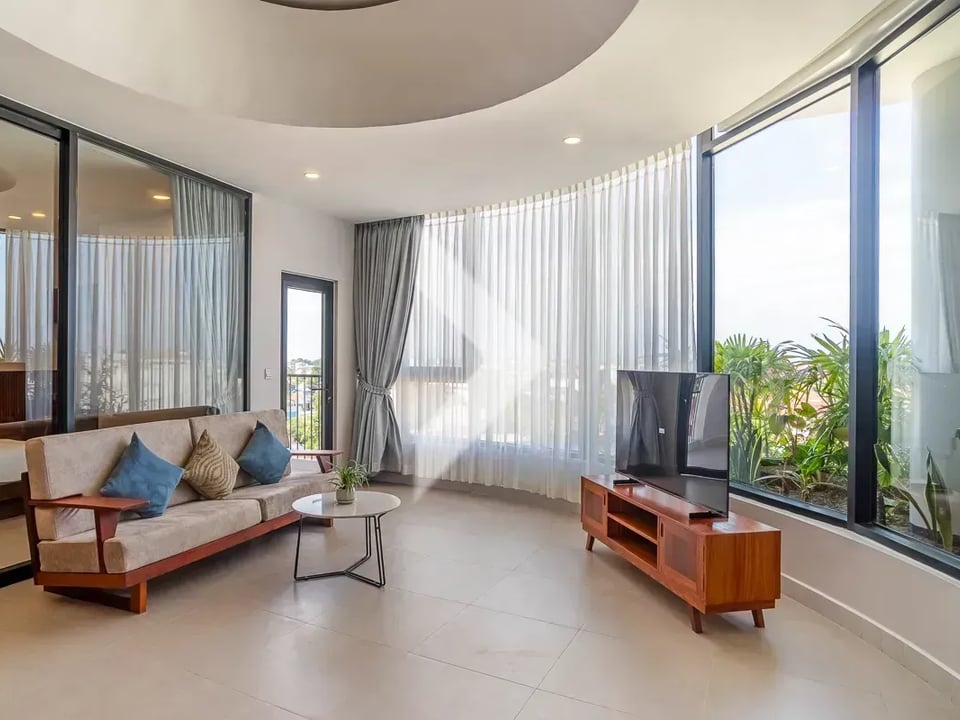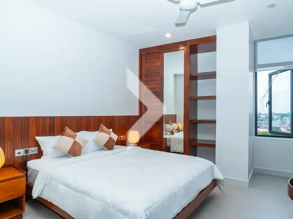 The Western style two-bedroom apartment for rent, conveniently located near Lok Ta Neuy Road and Phsar Leu market in Sla Kram Commune, Siem Reap City.