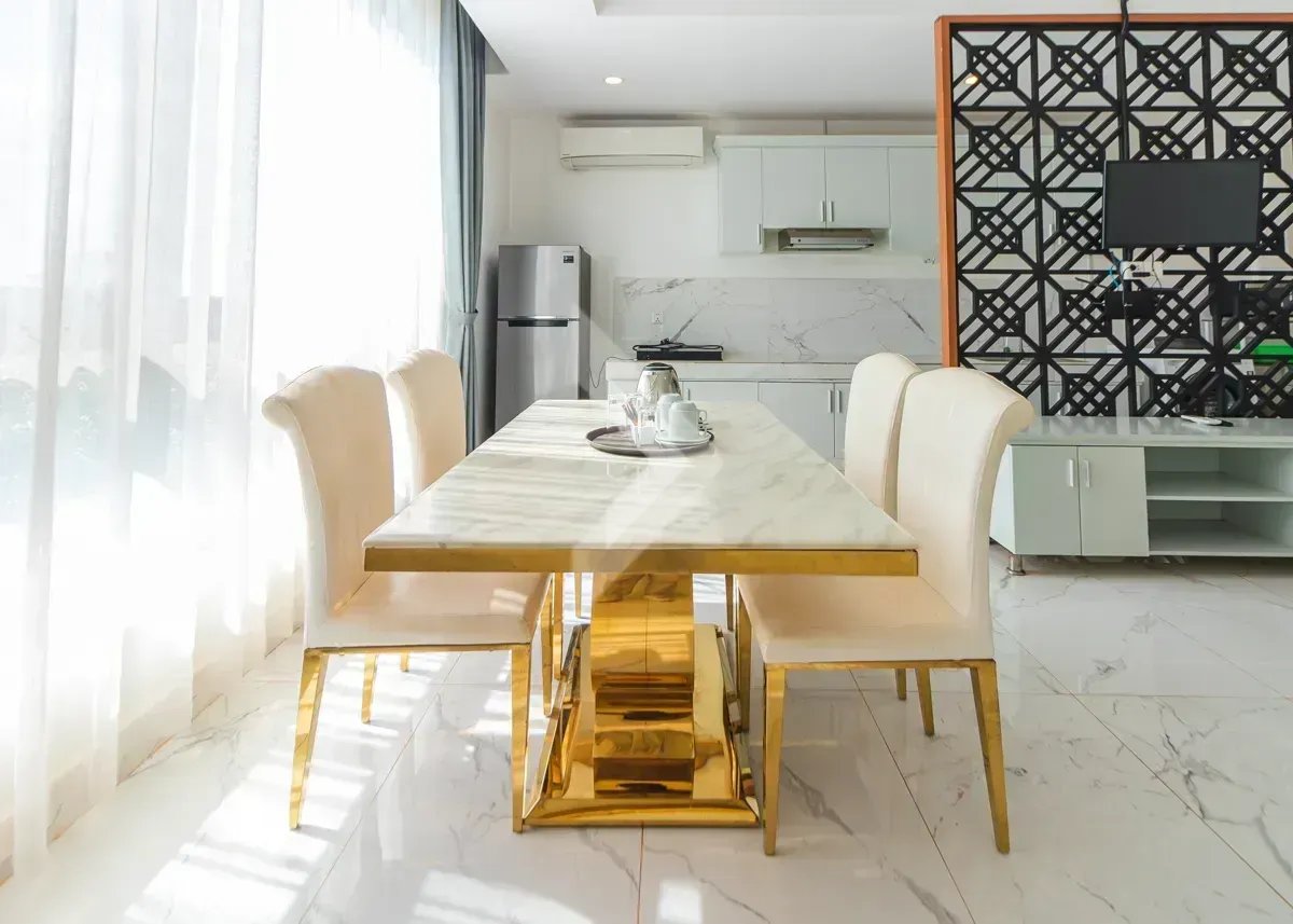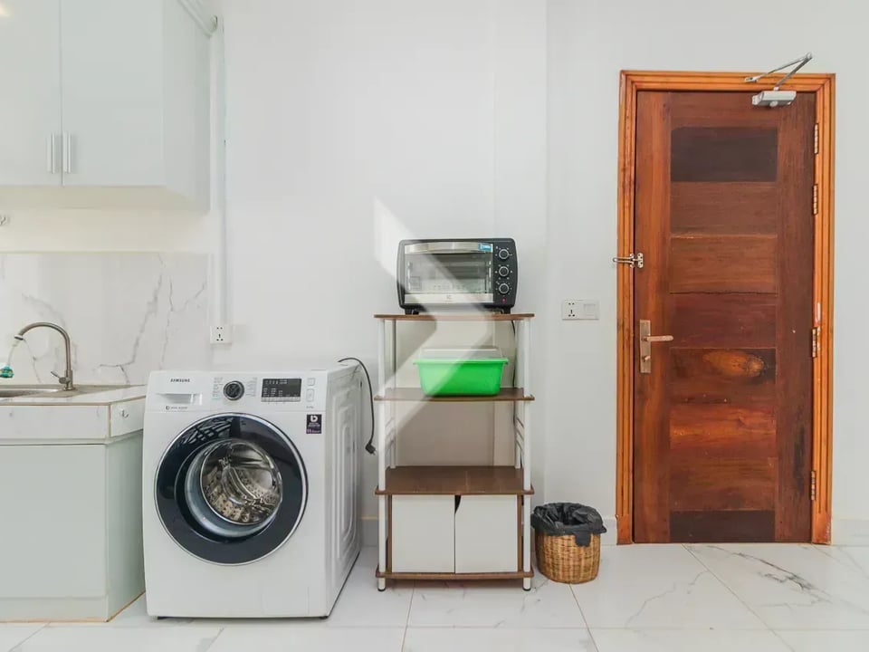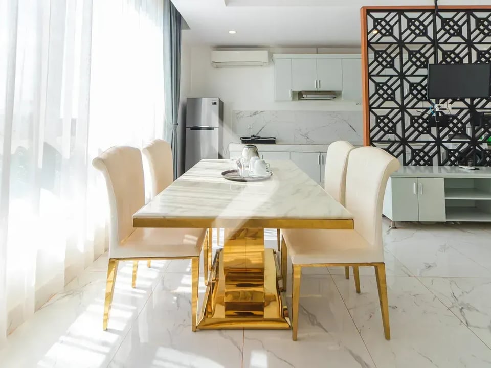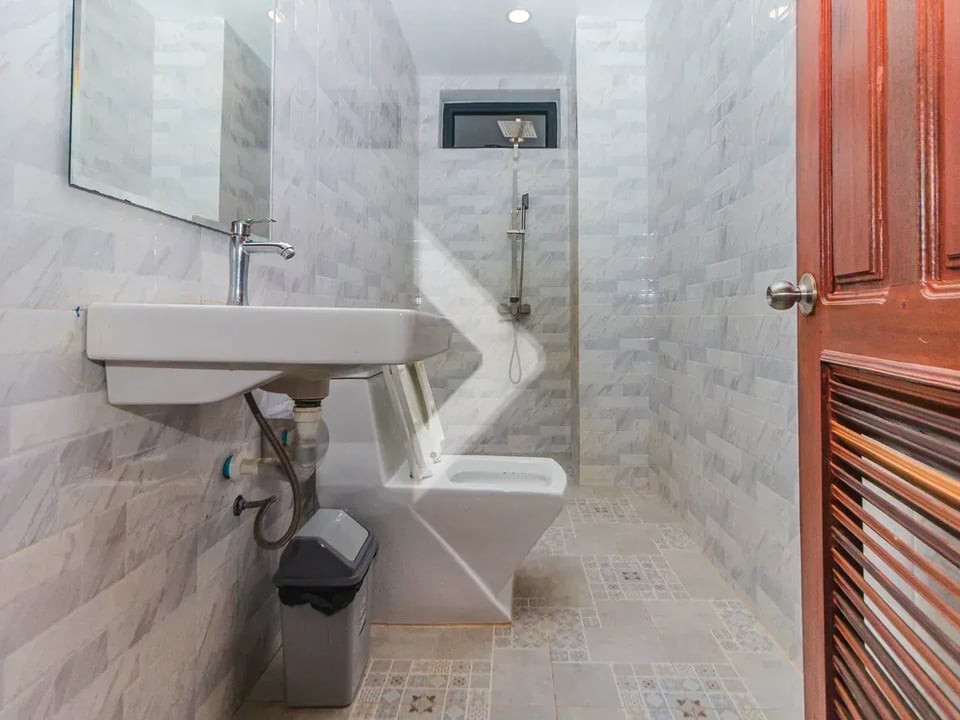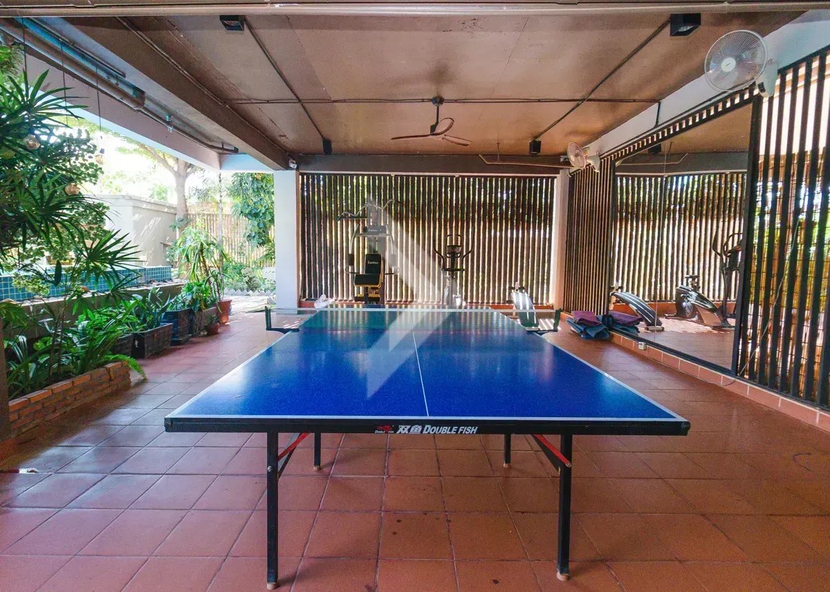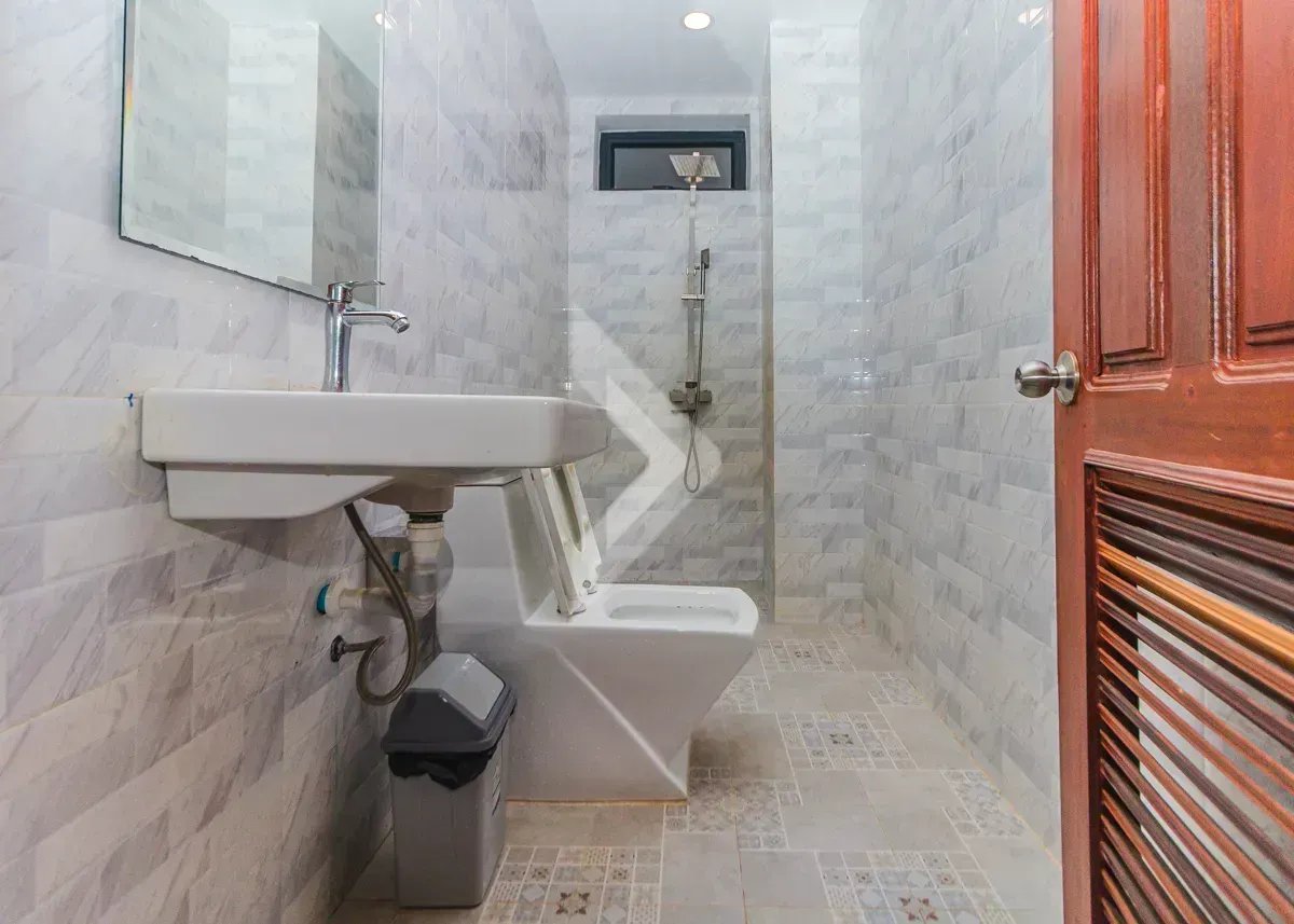 This two-bedroom apartment is in a modern building on a quiet street in the Svay Dangkum area. It has 75 sqm of interior space and a balcony to enjoy. From the balcony, you can see the great view, and faces the quiet street. The bedrooms are very bright, and the kitchen is fully equipped. The building itself rests on a beautiful, Swimming pool which is shared by the residential owners. There is a garage space located in the building as well.