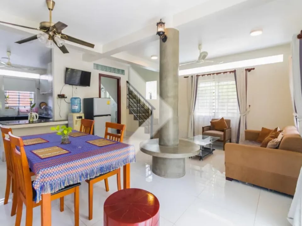 This charming 2-bedroom villa for rent in Sala Kamreuk is perfect for a relaxing getaway. It features a spacious living area that flows into a modern kitchen, ideal for family gatherings. Each bedroom has its own bathroom, providing comfort and privacy. Outside, you'll find a private pool surrounded by greenery, perfect for lounging and enjoying the outdoors. Conveniently located near local markets and restaurants, this villa offers both comfort and easy access to the best of the area.