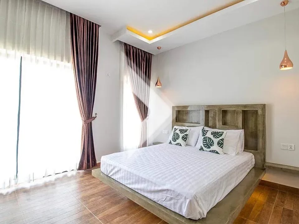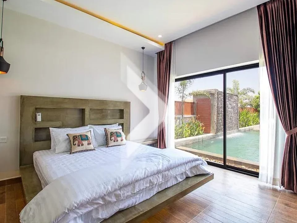 A charming 2-bedroom villa with a private pool located in Svay Dangkum Commune of Siem Reap City. This beautifully designed villa offers a spacious living area, two comfortable bedrooms, and a well-appointed kitchen, making it perfect for families or couples seeking a peaceful retreat. The highlight of the property is the inviting pool, surrounded by a landscaped garden, ideal for relaxation and outdoor entertaining.