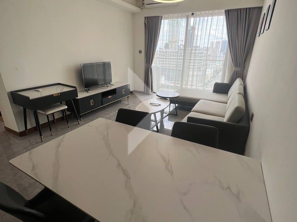 This three-bedroom apartment is located in Boeng Keng Kang Ti Bei along Monivong Boulevard, offering a comfortable living space of 111sqm. The unit is fully furnished and provides a practical layout with a cozy living area and dining space. The rental price is $1,500 per month and includes management fee, gym, swimming pool, yoga room, and 24/7 security. It is a good option for families or sharers looking for a convenient home with essential facilities in the BKK area.