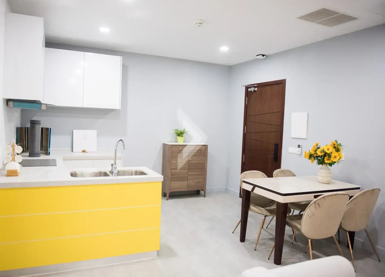 This fully furnished 3-bedroom condo on the 14th floor offers a secure and comfortable living experience with amenities like in-unit laundry, security features (alarm system, fire alarm, fire sprinklers, CCTV), car parking, a gym, swimming pool, and backup electricity.