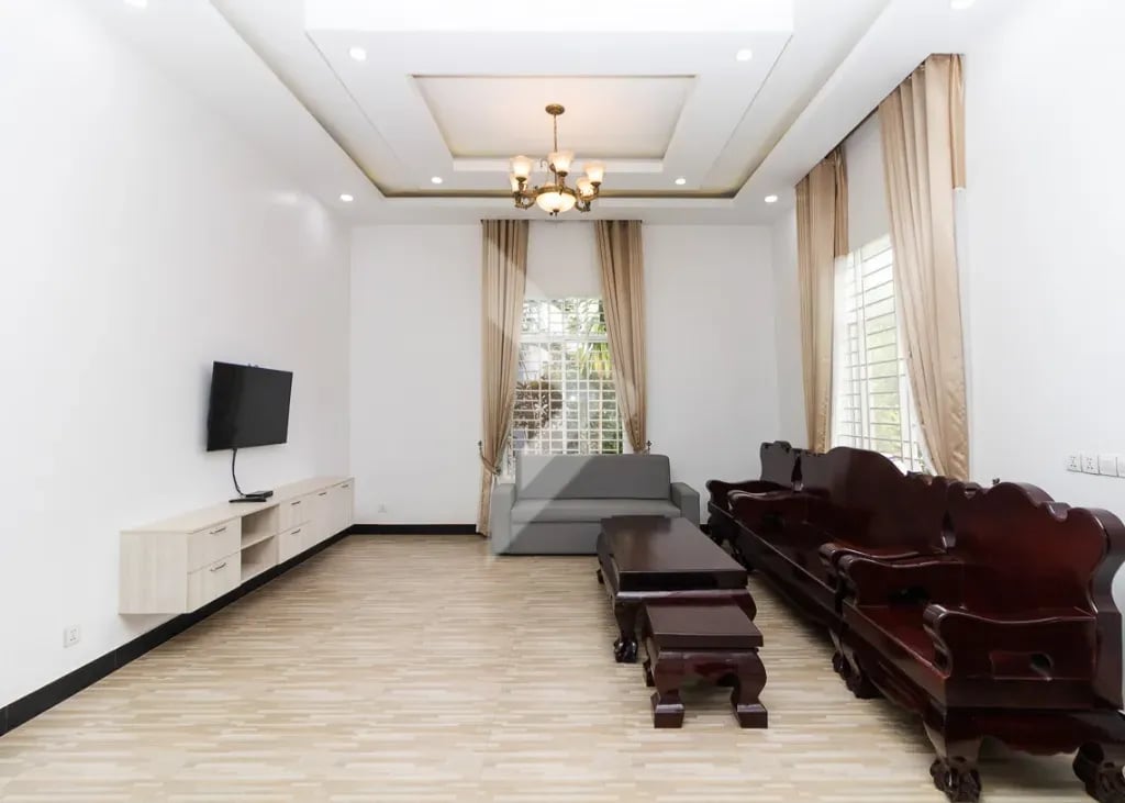 Rent this lovely 3-bedroom private villa in the peaceful Sala Kamreuk area! It’s fully furnished and ready for you to move in. Enjoy spacious living areas and a modern kitchen, perfect for family time or entertaining friends. The large garden offers a beautiful outdoor space to relax or play, and there's plenty of parking for you and your guests. This villa combines comfort and convenience, making it a great place to call home. Don’t miss out on this wonderful opportunity.