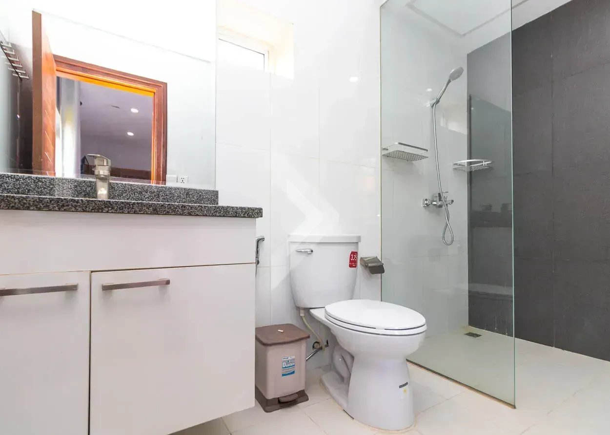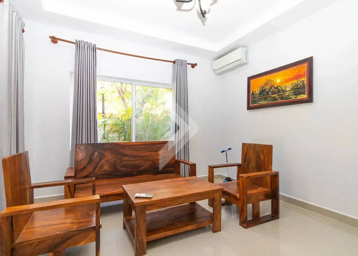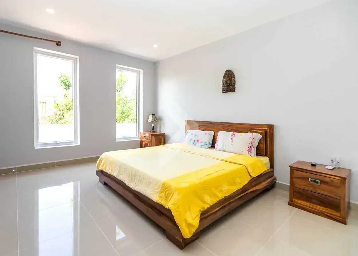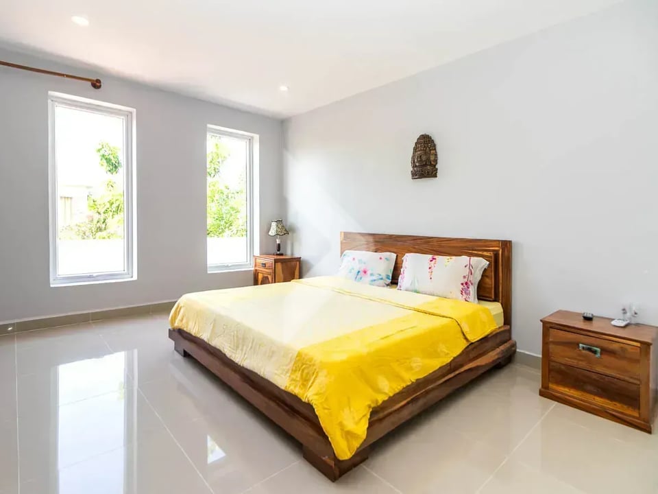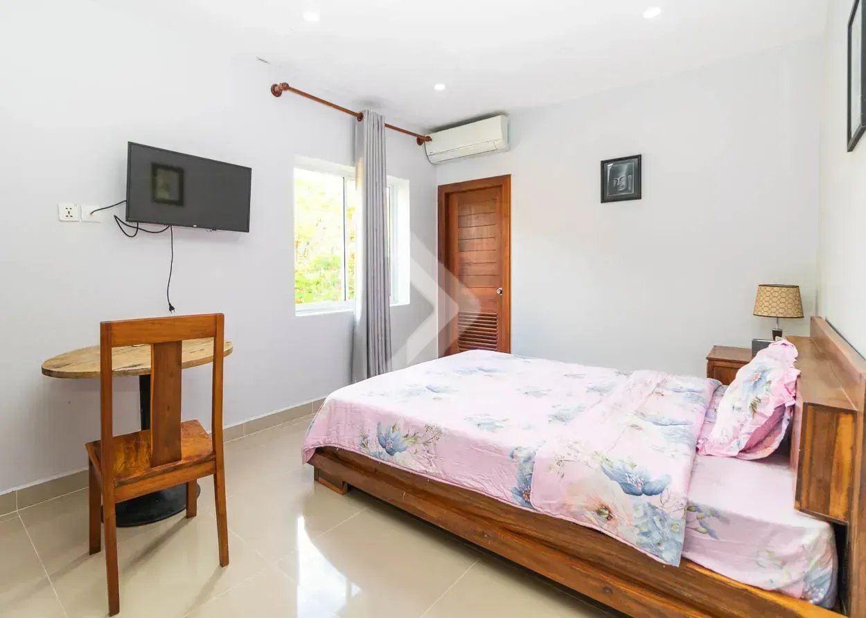 This modern bright 3 Bedroom, 4 Bathroom detached home, located in Sra Nage, Siem Reap, has a huge western style open plan kitchen, living and dining area, perfect for entertaining your family and friends from the Heart of the Home. Each room is fitted with A/C and each Bathroom has Hot & Cool water included, has a separate Laundry Room Inc. washing machine, plus off-road parking for 2 to 3 cars and garage for more storage or a 4th car!
