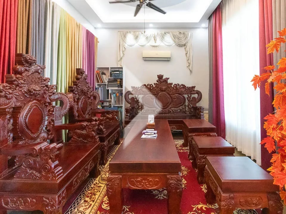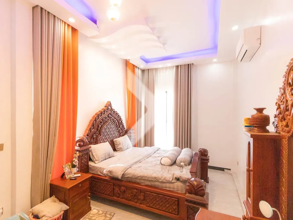 The Villa comes with a Livingroom, dining area and a kitchen, 3 bedrooms, 4 bathrooms with private parking space and garden. This property is located in Svay Dankum area. The area is also surrounded by shops, restaurants, banks, medical centers and many more which make it convenience for your living.