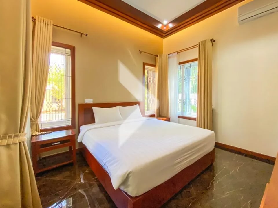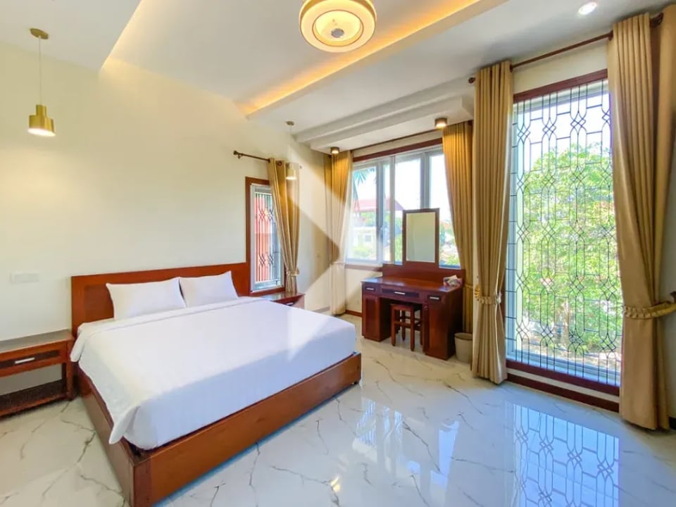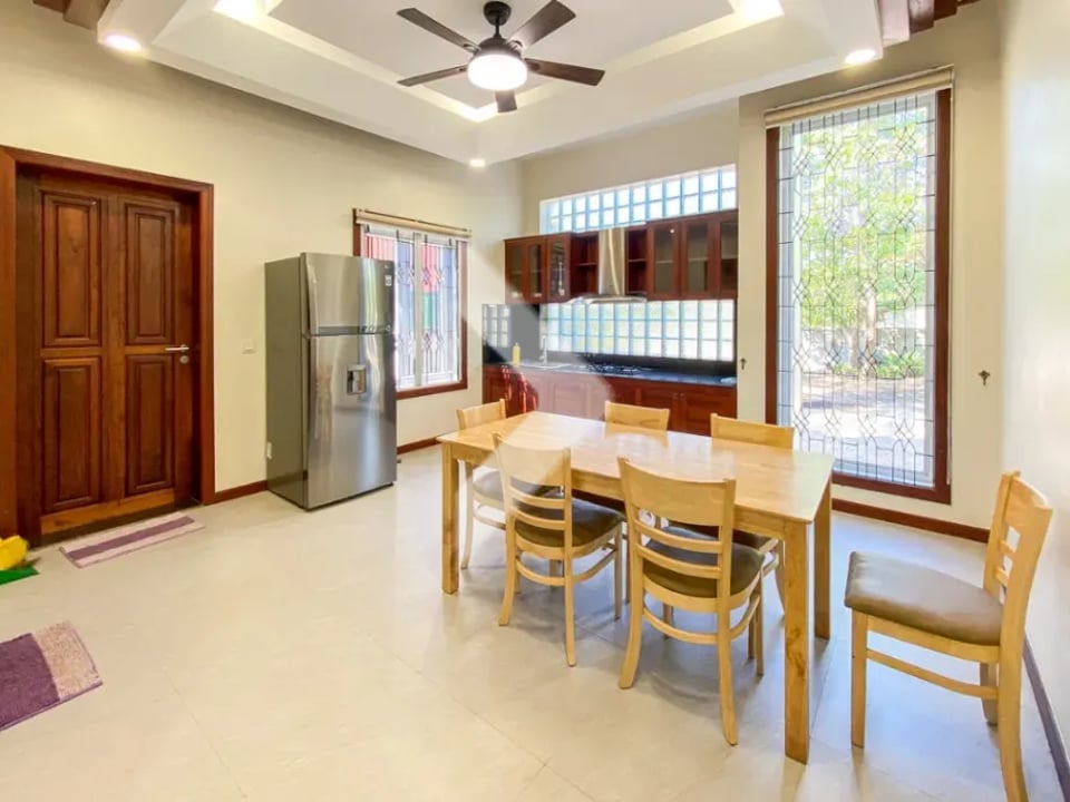 This fully furnished 4-bedroom villa for rent in the Sla Kram area of Siem Reap offers a blend of comfort and convenience near the riverside. The villa comes complete with stylish furniture and modern amenities, ensuring a move-in ready experience. Inside, you'll find a spacious, open-plan layout with tasteful décor and all the essentials for comfortable living. The property features a well-maintained garden and outdoor space ideal for relaxation and entertainment. Its proximity to the riverside provides a serene setting, while still being close to local attractions and amenities. This villa is perfect for those seeking a ready-to-live-in home with a peaceful yet accessible location.