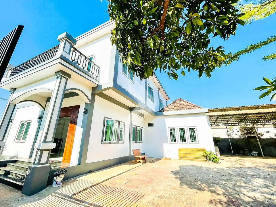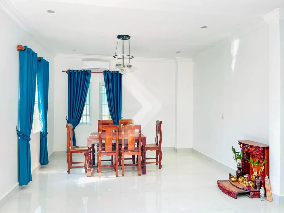 The Villa comes with a Livingroom, dining area and a kitchen, 4 bedrooms, 5 bathrooms with private parking space and garden. This property is located in Svay Dankum area. The area is also surrounded by shops, restaurants, banks, medical centers and many more which make it convenience for your living.
