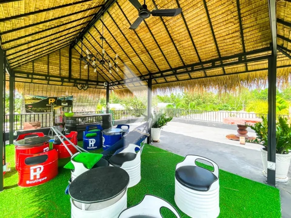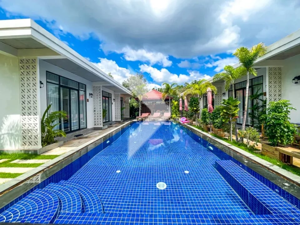 This spacious 8-bedroom villa for rent in the Svay Dangkum area of Siem Reap is perfect for large families or groups. The villa features a private swimming pool and beautiful gardens, offering a peaceful and relaxing atmosphere. Each bedroom is large and comfortable, and the open living and dining areas are great for spending time together. Located just a short drive from Siem Reap’s city center, this villa provides a perfect blend of privacy and convenience.