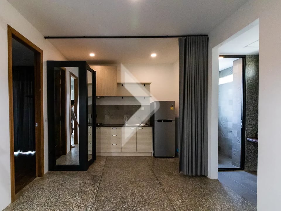 The apartment features a beautiful greenery garden and a big swimming pool, perfect for relaxing and enjoying the serene surroundings.