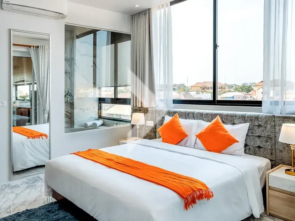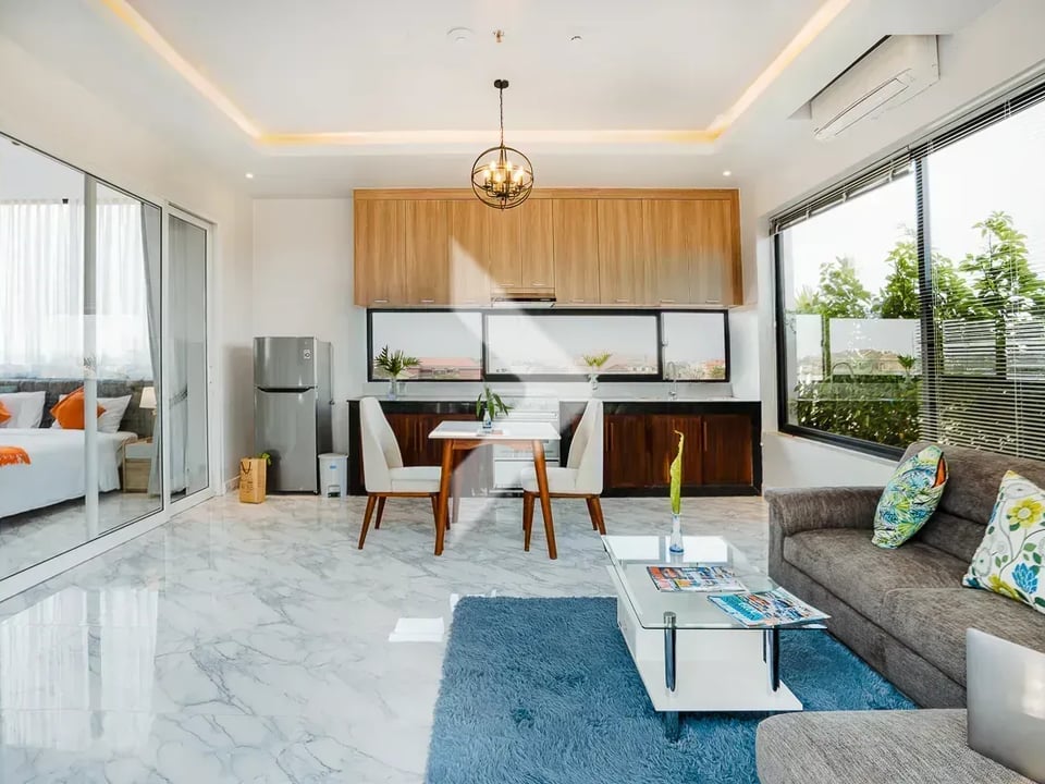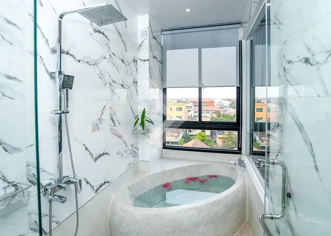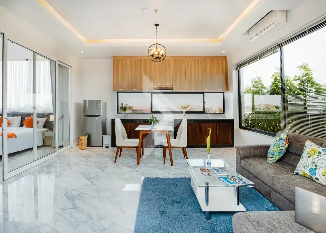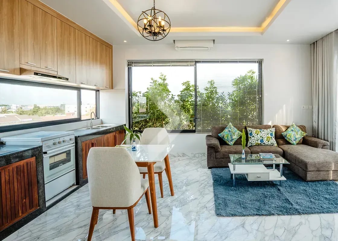 The unique one-bedroom rooftop apartment for rent, conveniently located near Tmor Meas Road and Angkor High School in Sala Kamraeuk Commune, Siem Reap City. This exclusive unit is the only one on the rooftop, offering privacy and stunning views. Enjoy comfortable living with easy access to essential amenities and services. Ideal for individuals or couples seeking a peaceful and well-connected place to live.