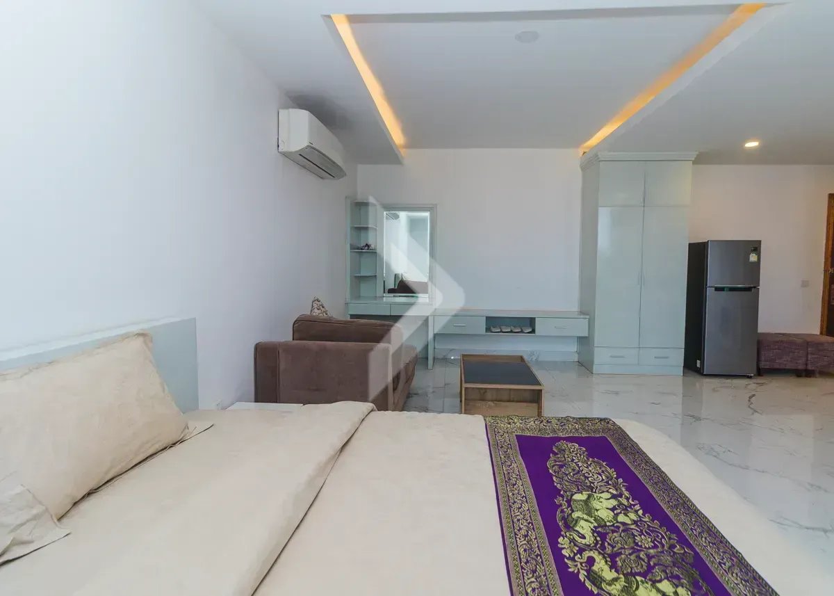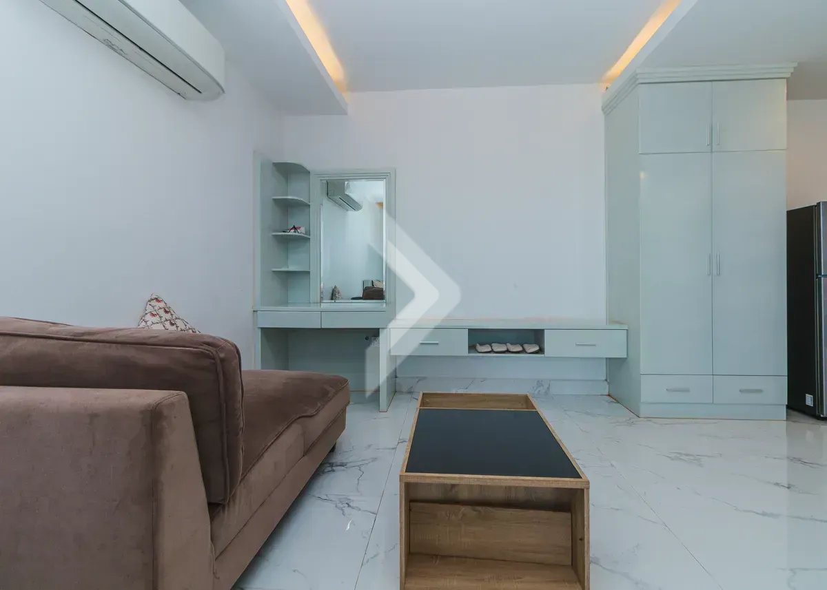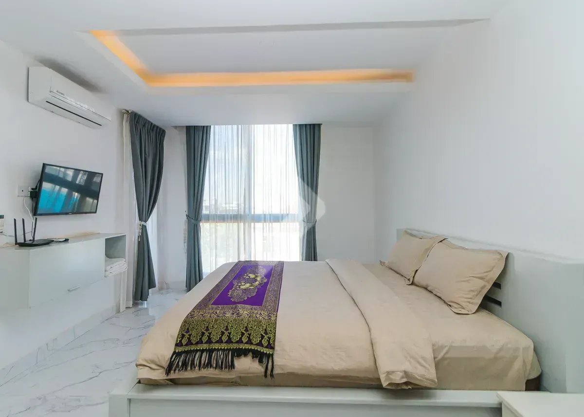 This newly built apartment is in a modern building on a quiet street in the Svay Dangkum area. It has 55 sqm of interior space and a balcony to enjoy. From the balcony, you can see the great view, and faces the quiet street. The bedrooms are very bright, and the kitchen is fully equipped. The building itself rests on a beautiful, Swimming pool which is shared by the residential owners. There is a garage space located in the building as well.