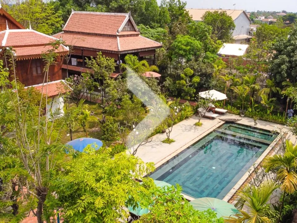 Check out this fantastic 9-bedroom boutique for rent in Sla Kram Commune, Krong Siem Reap! This unique property features three charming wooden houses, each fully furnished and designed for comfort. With a beautiful pool at the center, it’s perfect for relaxing or hosting guests. The spacious layout provides plenty of room for families or groups, making it an excellent option for travelers or those looking to start a boutique business. Located near local attractions and amenities, this property combines style and convenience.