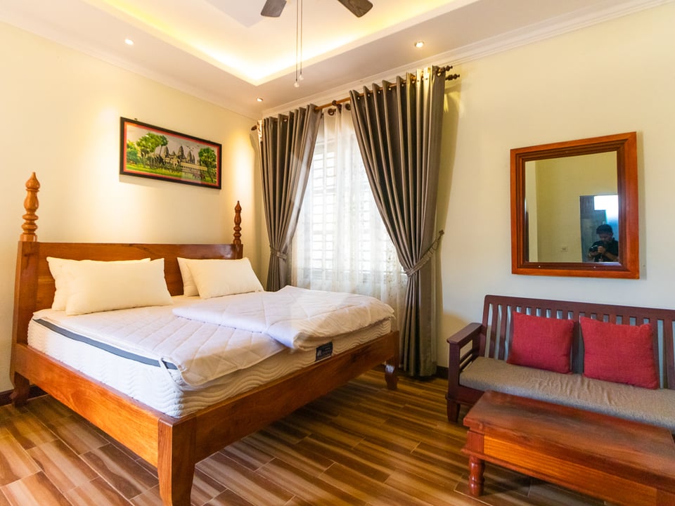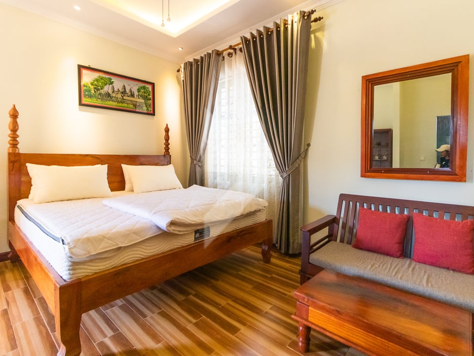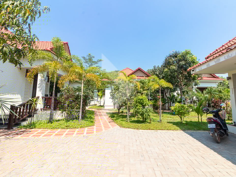 This exceptional property in the peaceful Chreav area of Siem Reap features four stunning bungalow villas, offering both privacy and luxury. The land spans 27 meters by 25 meters. Chreav area, Siem Reap, a serene neighborhood with quick access to Siem Reap's key attractions, including Angkor Wat, Siem Reap International Airport, and local markets. Each bungalow villa is thoughtfully designed, with open-plan living areas, private bedrooms, and en-suite bathrooms. Large windows allow natural light to flood the interiors, creating a warm, welcoming atmosphere. The property is set on a generous land plot, with each villa surrounded by well-maintained gardens. Ample outdoor space offers room for further development, such as the addition of a swimming pool, or space for leisure activities. This property is an excellent opportunity for investors, with the potential to be used as a boutique resort, guesthouses, or a high-end vacation rental business.