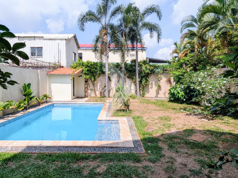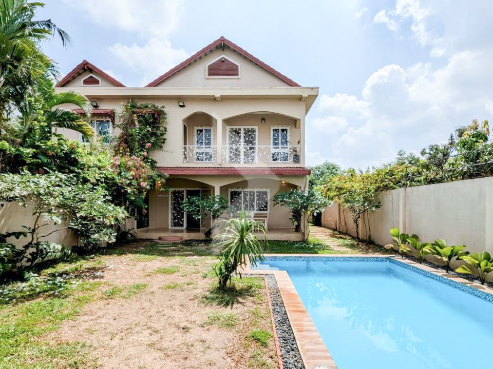 This beautiful colonial-style villa is located in Khan Chbar Ampov, just 4km from Monivong Bridge—only about a 10-minute drive or ride from central Phnom Penh. Built with timeless architectural charm, the villa features 4 spacious bedrooms, 5 bathrooms, and a dedicated study room, making it ideal for family living or long-term investment. The interior offers a large, fully equipped kitchen, generous living areas, and an abundance of natural light throughout. Set within a peaceful, green environment, the home also includes a private swimming pool and landscaped garden, providing a perfect balance of indoor comfort and outdoor relaxation.
