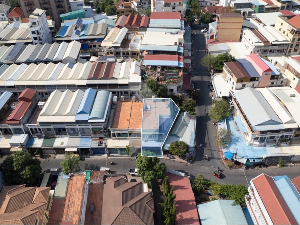 This commercial house is now available for sale in the vibrant area of Sangkat Tuol Tumpoung 2. Built on a 172m² land (irregular shape), the house measures 7.1m x 17m and offers 6 bedrooms and 7 bathrooms — perfect for a large family or those seeking extra space. One of its key highlights is having front and back entrances, adding convenience and flexibility for access, parking, or future renovations. Just 5 minutes away from Tuol Tumpoung Market (Russian Market), the location is ideal for living or investment, with nearby schools, cafes, shops, and local businesses making it a popular residential and commercial zone.