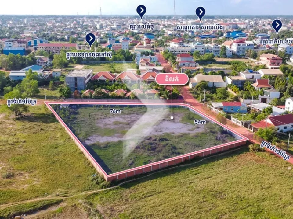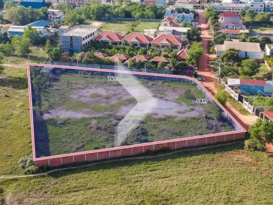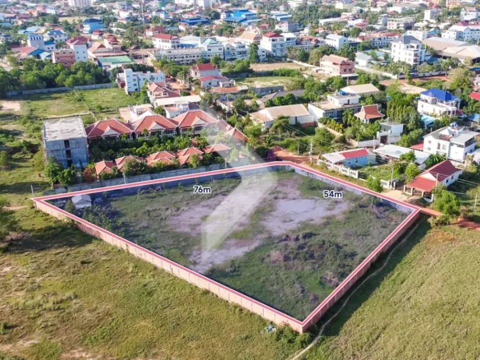 The location ensures strong connectivity and high traffic flow, making it an ideal spot for commercial ventures. Covering 5132 square meters, this large parcel provides ample space for various types of development. Whether you envision a retail complex, office building, hotel, or mixed-use development, the generous size offers flexibility and ample room for your project. This high-traffic location is perfect for businesses seeking visibility and accessibility, enhancing the potential for customer engagement and success. With its prime location and expansive size, this land presents a compelling opportunity for developers and investors looking to capitalize on the growth of Siem Reap.