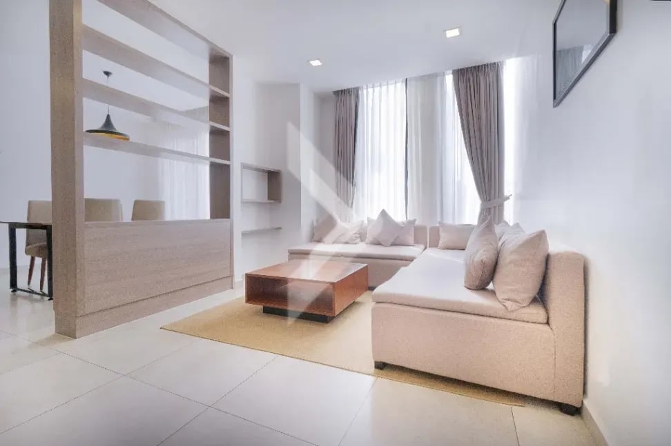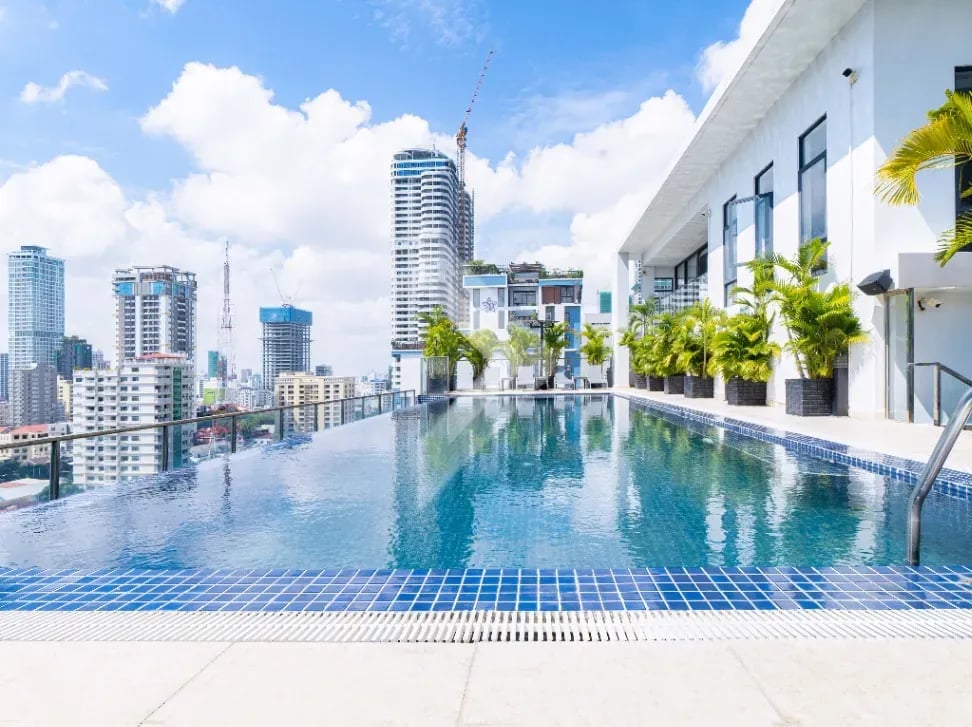 This stunning 2-bedroom apartment is located on the 5th floor of a modern building along Pasteur Road 51, in the heart of the vibrant BKK1 district. Boasting 110 sqm of space, the apartment is fully furnished with high-quality, contemporary fittings that offer both style and comfort.