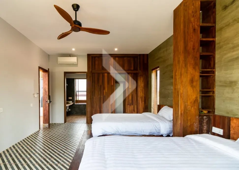 This private villa, set on a 496 sqm plot, features 3 bedrooms and 4 bathrooms. Located in the quiet Svay Dankum area, just 950m from Kan Trork Market, it's ideal for a peaceful retreat. The villa also offers the option to have a pool built after booking. With its serene location and flexible amenities, this property is perfect for starting an Airbnb business.