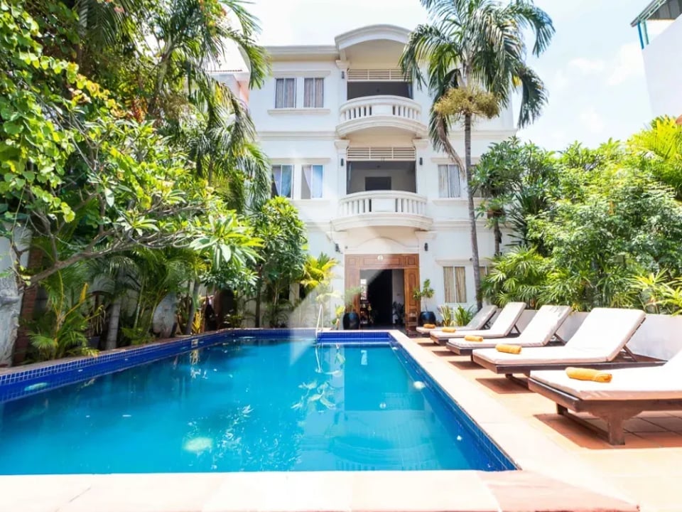 This well-maintained hotel is located in the popular Wat Bo area, Wat Bo Village, Sala Kamraeuk Commune. Situated on the main road, it's just 2 minutes to the riverside and 8 minutes to Pub Street. The hotel features a swimming pool and is currently operating smoothly with a clean and welcoming atmosphere. Located in a prime area, the value of this land is expected to increase every year, making it a great long-term investment.