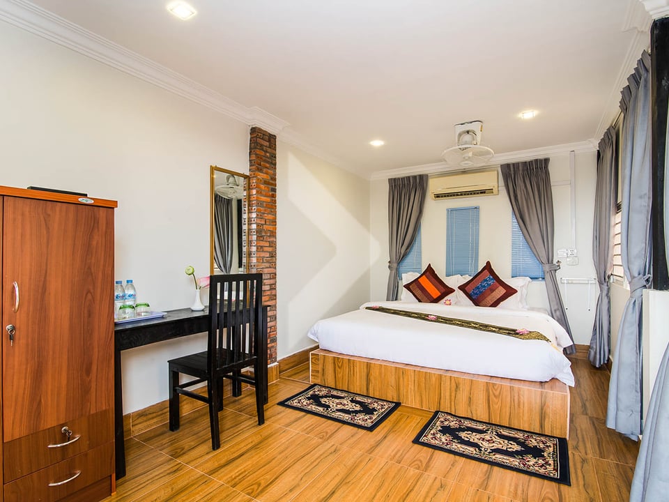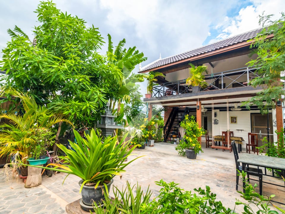 This 4-bedroom house for rent in Siem Reap, located in the quiet Svay Dangkum area, is a great holiday home. Surrounded by fields and greenery, it offers a peaceful and relaxing environment. The house has plenty of space with lots of natural light and a comfortable layout. There’s also a lovely garden, providing fresh air and a calm atmosphere. It’s just a short drive to main attractions in Siem Reap, making it a perfect spot to relax and explore the area.