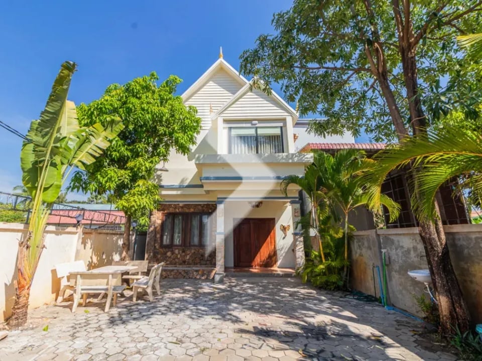 This lovely house for sale in Svay Dangkum, Siem Reap City! It has three cozy bedrooms and four bathrooms, making it great for families. The bright living area flows into a kitchen with plenty of storage. Enjoy the outdoor space for relaxing or hosting friends. Conveniently located near shops and attractions, this home is a perfect blend of comfort and convenience.