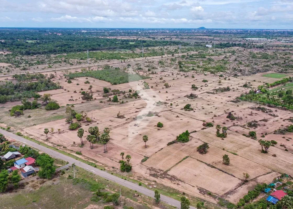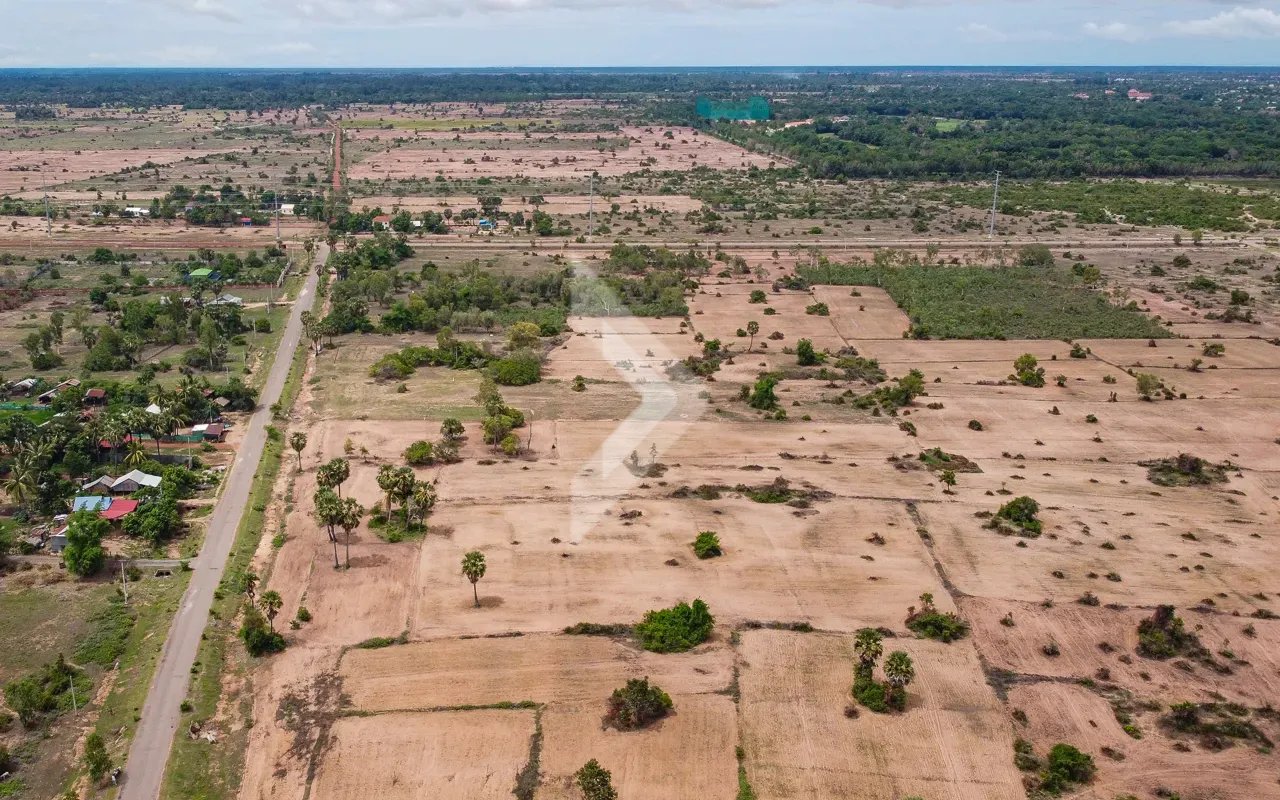 Investment opportunity: 9.9 hectares of land located on the east side of Siem Reap City. Situated in a developing area designated by the government, this land is strategically close to the new airport, making it ideal for future growth and development.