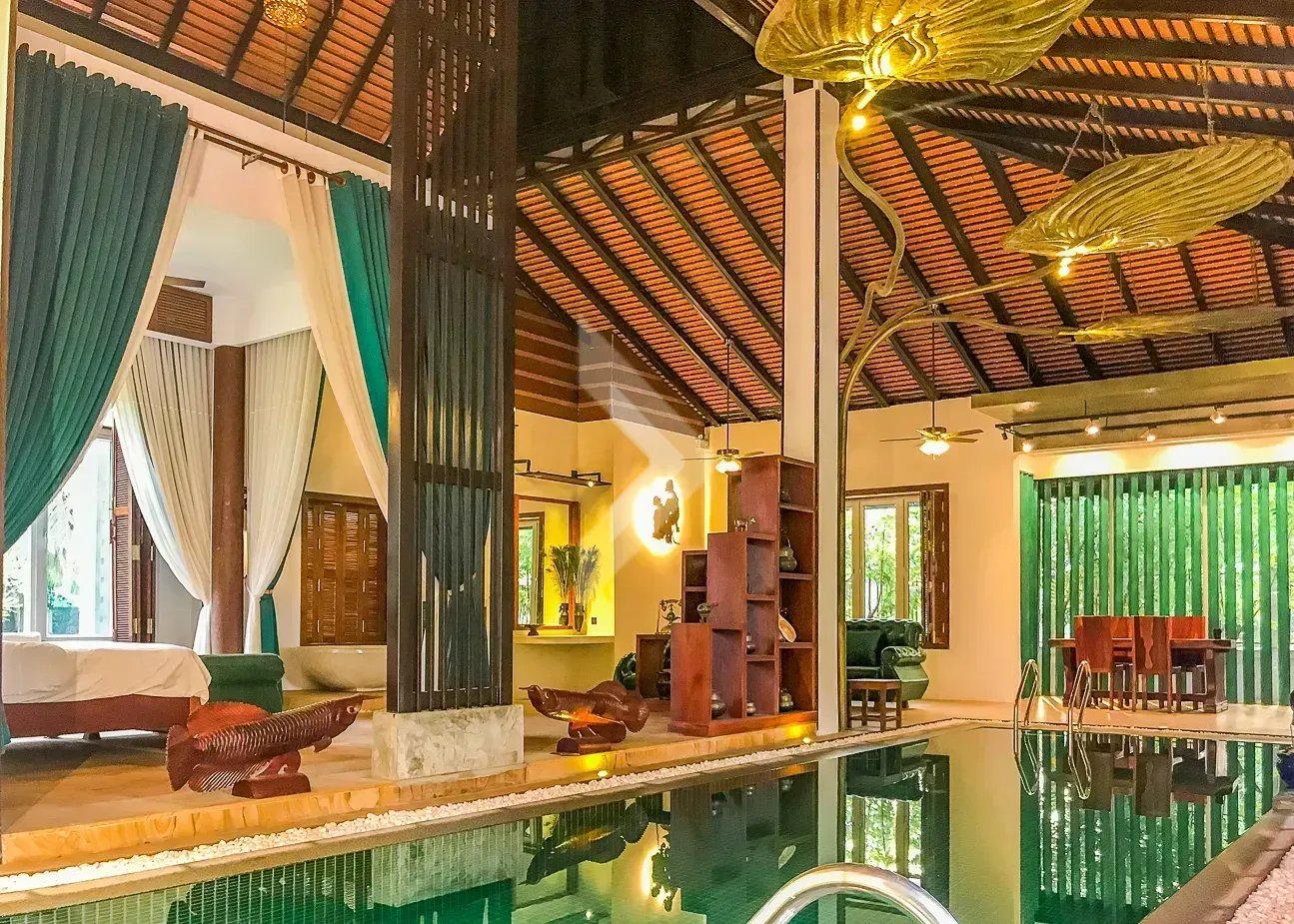 Discover this unique Khmer-European hybrid villa, offering a blend of traditional charm and modern amenities. This exquisite property features 2 bedrooms and 2 bathrooms, providing a comfortable and stylish living space.